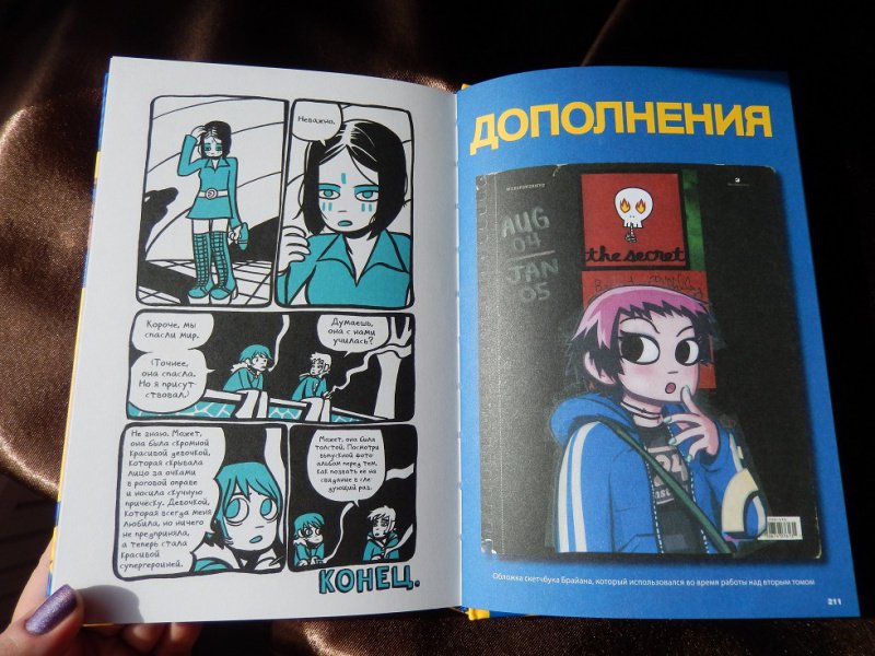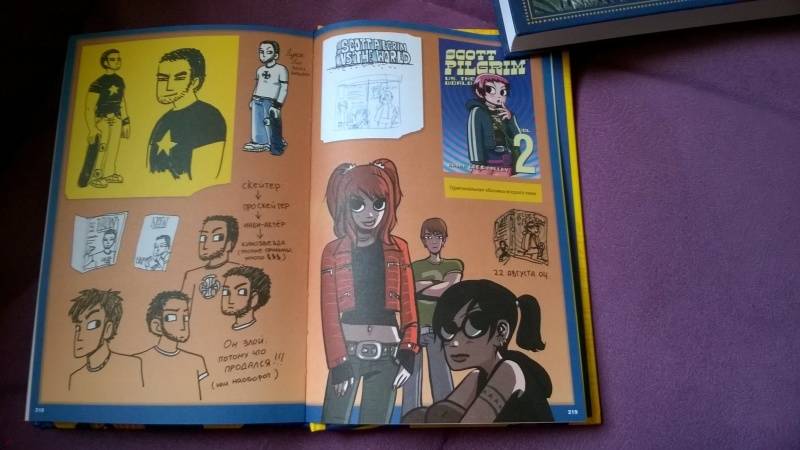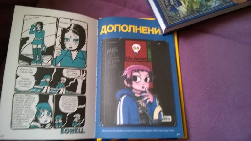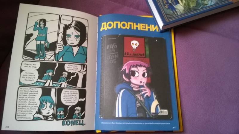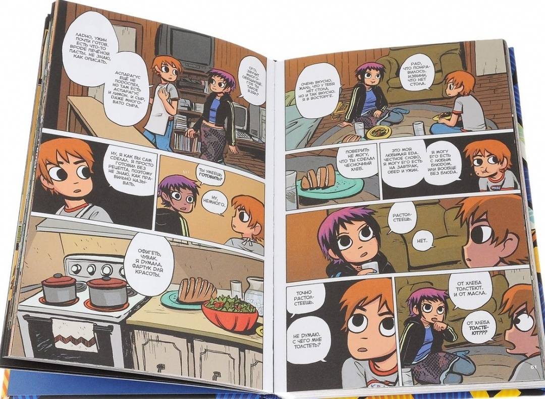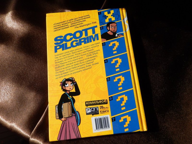 ОписаниеПриключения знаменитого Скотта Пилигрима теперь в цвете!Жизнь Скотта Пилигрима прекрасна. Ему 23 года, он играет в группе, "временно без работы" и встречается с прелестной старшеклассницей. Всё было отлично, пока сквозь его сны не начала разъезжать на роликах мозгоразрывающе модная девчонка-курьер по имени Рамона Флауэрс. Но путь к сердцу Рамоны не усеян розовыми лепестками: на пути у Скотта стоят её семеро злых бывших. Сумеет ли Скотт разделаться с плохими ребятами и достичь счастья, не поставив всю свою маленькую прекрасную жизнь на уши?В книге около тридцати страниц дополнений об истории создания комикса, написанных самим Брайаном Ли О'Мэлли, а также примечания, которые окончательно отвечают на все вопросы и полностью устраняют остатки недопонимания между автором и читателем.Приключения знаменитого Скотта Пилигрима теперь в цвете!Жизнь Скотта Пилигрима прекрасна. Ему 23 года, он играет в группе, "временно без работы" и встречается с прелестной старшеклассницей. Всё было отлично, пока сквозь его сны не начала разъезжать на роликах мозгоразрывающе модная девчонка-курьер по имени Рамона Флауэрс. Но путь к сердцу Рамоны не усеян розовыми лепестками: на пути у Скотта стоят её семеро злых бывших. Сумеет ли Скотт разделаться с плохими ребятами и достичь счастья, не поставив всю свою маленькую прекрасную жизнь на уши?В книге около тридцати страниц дополнений об истории создания комикса, написанных самим Брайаном Ли О'Мэлли, а также примечания, которые окончательно отвечают на все вопросы и полностью устраняют остатки недопонимания между автором и читателем.