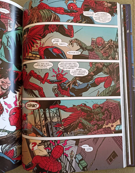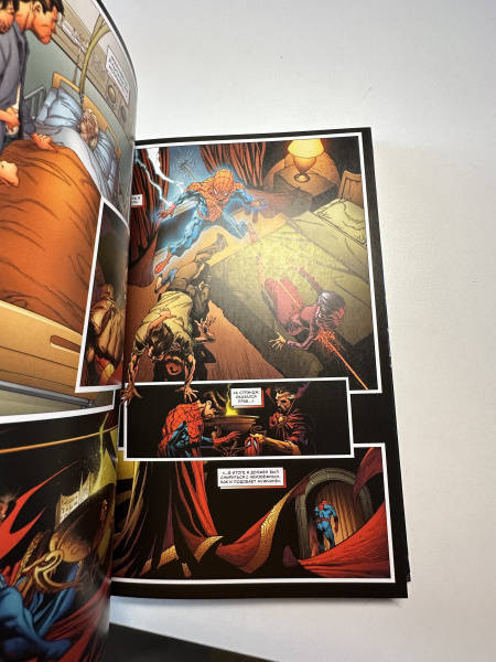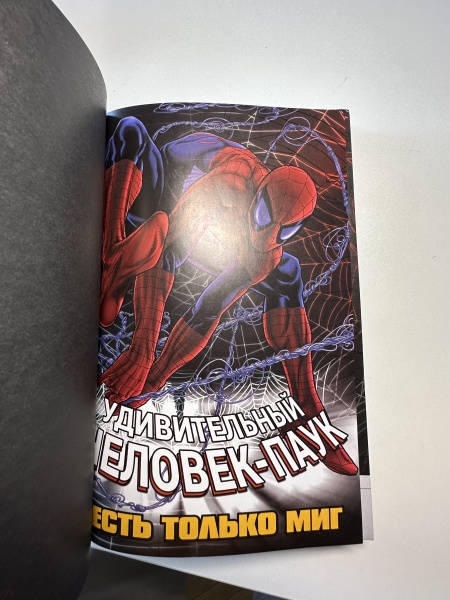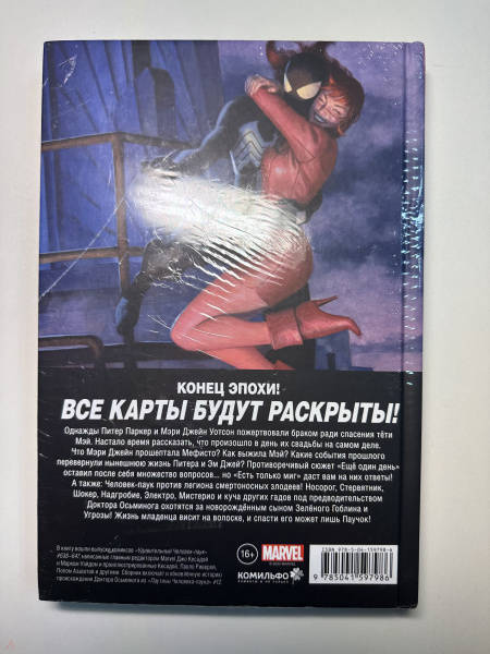 ОписаниеКонец эпохи! Все карты будут раскрыты!Однажды Питер Паркер и Мэри Джейн Уотсон пожертвовали браком ради спасения тёти Мэй. Настало время рассказать, что произошло в день их свадьбы на самом деле. Что Мэри Джейн прошептала Мефисто? Как выжила Мэй? Какие события прошлого перевернули нынешнюю жизнь Питера и Эм Джей? Противоречивый сюжет "Ещё один день" оставил после себя множество вопросов... но "Есть только миг" даст вам на них ответы! А также: Человек-паук против легиона смертоносных злодеев! Носорог, Стервятник, Шокер, Надгробие, Электро, Мистерио и куча других гадов под предводительством Доктора Осьминога охотятся за новорождённым сыном Зелёного Гоблина и Угрозы! Жизнь младенца висит на волоске, и спасти его может лишь Паучок!В книгу вошли выпуски комиксов "Удивительный Человек-паук" #638-647, написанные главным редактором Marvel Джо Кесадой и Марком Уэйдом и проиллюстрированные Кесадой, Паоло Риверой, Полом Азасетой и другими. Сборник включает и обновлённую историю происхождения Доктора Осьминога из "Паутины Человека-паука" #12.СвернутьКонец эпохи! Все карты будут раскрыты!Однажды Питер Паркер и Мэри Джейн Уотсон пожертвовали браком ради спасения тёти Мэй. Настало время рассказать, что произошло в день их свадьбы на самом деле. Что Мэри Джейн прошептала Мефисто? Как выжила Мэй? Какие события прошлого перевернули нынешнюю жизнь Питера и Эм Джей? Противоречивый сюжет "Ещё один день" оставил после себя множество вопросов... но "Есть только миг" даст вам на них ответы! А также: Человек-паук против легиона смертоносных злодеев! Носорог, Стервятник, Шокер, Надгробие, Электро, Мистерио и куча других гадов под предводительством Доктора Осьминога охотятся за новорождённым сыном Зелёного Гоблина и Угрозы! Жизнь младенца висит на волоске, и спасти его может лишь Паучок!В книгу вошли выпуски комиксов "Удивительный Человек-паук" #638-647, написанные главным редактором Marvel Джо Кесадой и Марком Уэйдом и проиллюстрированные Кесадой, Паоло Риверой, Полом Азасетой и другими. Сборник включает и обновлённую историю происхождения Доктора Осьминога из "Паутины Человека-паука" #12.СвернутьСвернуть