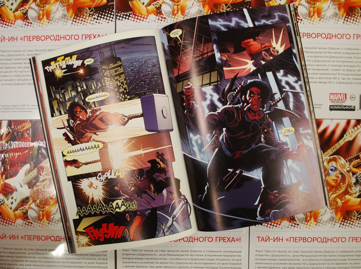 ОписаниеАгент Престон вышла на след прошлой жизни Дэдпула и совершила шокирующее открытие: у Дэдпула есть... дочь! Малышка растет без папки в окружении террористов, которые жаждут кровопролития... в особенности Дэдпульего рода. И конечно, это все значительно усложняет ее жизнь! Но у Дэдпула нет на это времени: он занят борьбой с армией Дракулы, ему даже пришлось просить о помощи молодую Ослепительную из эпохи диско! Но пусть и с новой напарницей, сможет ли Дэдпул уйти от острых клыков нежити, чтобы успеть спасти свою кровиночку? И откуда вообще у него дочь? Также встречайте: флэшбек в мрачные и жестокие 90-е, где мы узнаем темнейший секрет из жизни Дэдпула! Приглашённые звёзды 90-х: Саблезубый и Отряд Альфа!Агент Престон вышла на след прошлой жизни Дэдпула и совершила шокирующее открытие: у Дэдпула есть... дочь! Малышка растет без папки в окружении террористов, которые жаждут кровопролития... в особенности Дэдпульего рода. И конечно, это все значительно усложняет ее жизнь! Но у Дэдпула нет на это времени: он занят борьбой с армией Дракулы, ему даже пришлось просить о помощи молодую Ослепительную из эпохи диско! Но пусть и с новой напарницей, сможет ли Дэдпул уйти от острых клыков нежити, чтобы успеть спасти свою кровиночку? И откуда вообще у него дочь? Также встречайте: флэшбек в мрачные и жестокие 90-е, где мы узнаем темнейший секрет из жизни Дэдпула! Приглашённые звёзды 90-х: Саблезубый и Отряд Альфа!