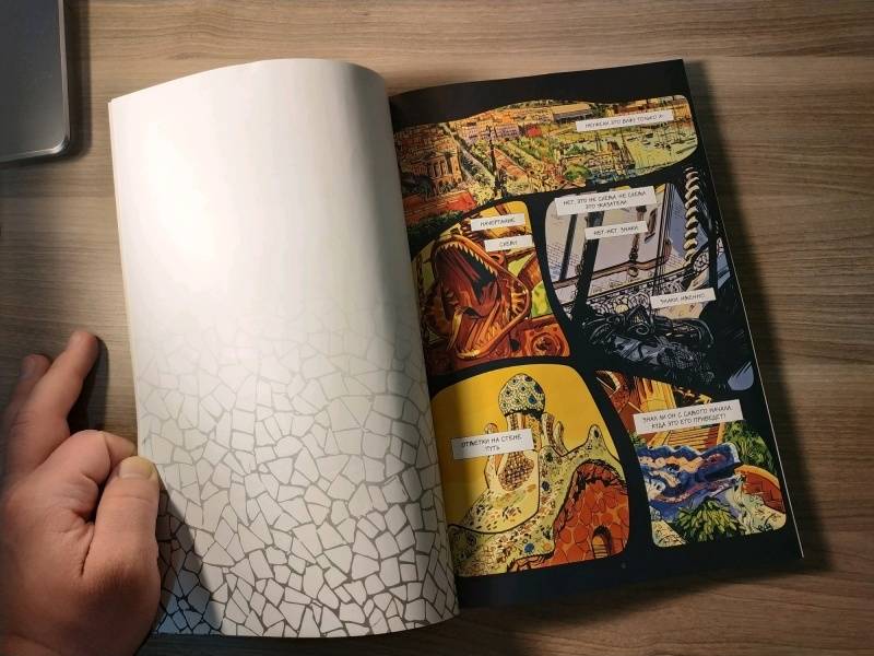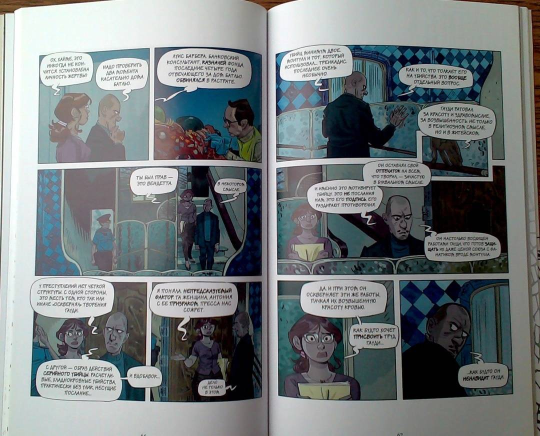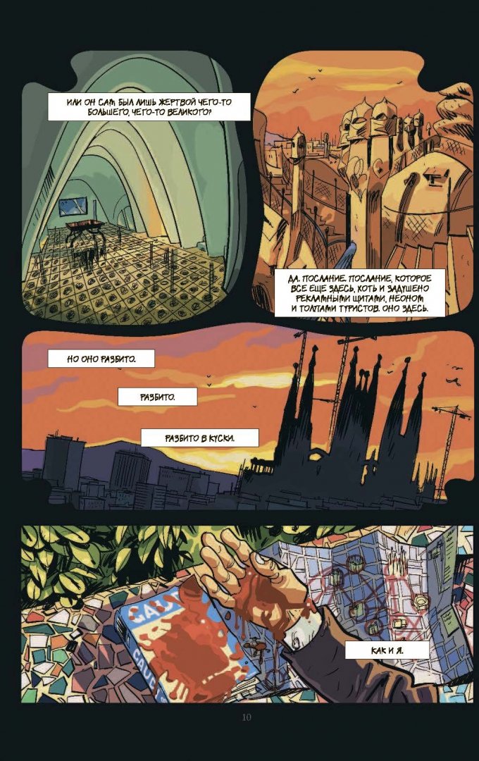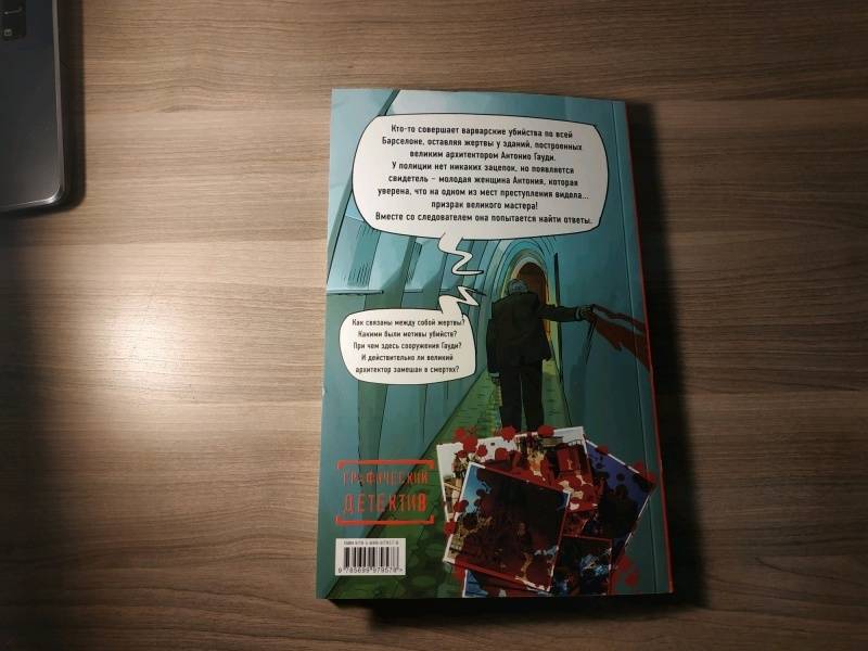 ОписаниеУвлекательный графический роман с закрученным сюжетом и яркими персонажами. В центре повествования - молодая женщина Антония, которая волею случая оказывается впутанной в таинственную историю убийств: жертвы на первый взгляд были никак не связаны между собой, а в убийстве подозревали... призрак великого испанского архитектора Гауди! За дело берется один из самых опытных полицейских в городе, который не верит в мистику и считает, что убийца вполне реален. Сможет ли он помочь Антонии избежать опасности? Сможет ли сама Антония понять, что правда, а что вымысел? И какое отношение ко всему этому имеет великий архитектор?Узнайте это первыми на страницах графического детектива "Призрак Гауди. Загадка великого мастера".Увлекательный графический роман с закрученным сюжетом и яркими персонажами. В центре повествования - молодая женщина Антония, которая волею случая оказывается впутанной в таинственную историю убийств: жертвы на первый взгляд были никак не связаны между собой, а в убийстве подозревали... призрак великого испанского архитектора Гауди! За дело берется один из самых опытных полицейских в городе, который не верит в мистику и считает, что убийца вполне реален. Сможет ли он помочь Антонии избежать опасности? Сможет ли сама Антония понять, что правда, а что вымысел? И какое отношение ко всему этому имеет великий архитектор?Узнайте это первыми на страницах графического детектива "Призрак Гауди. Загадка великого мастера".