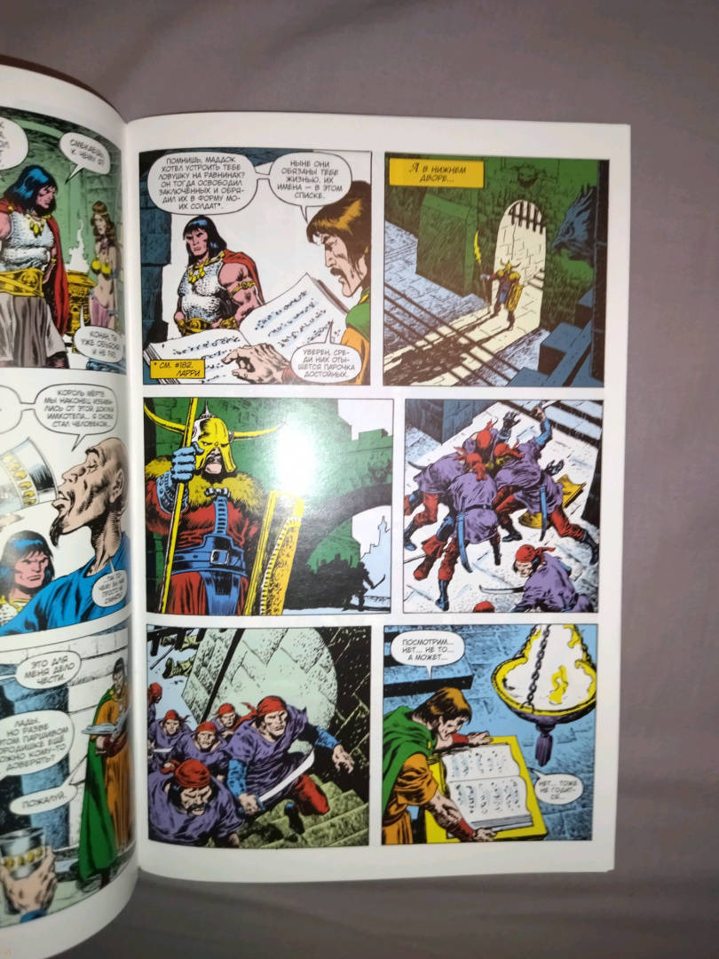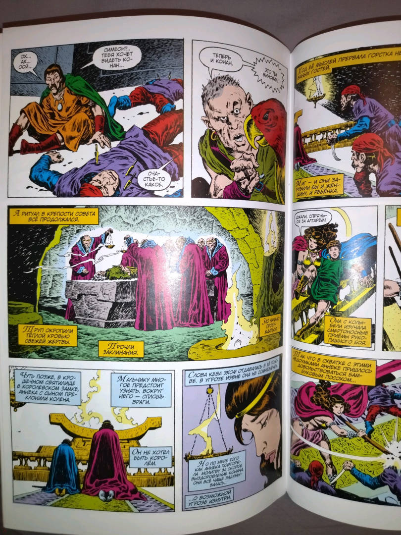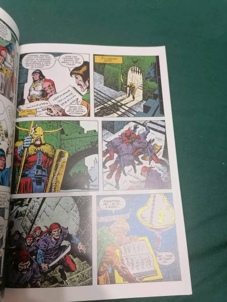 ОписаниеПрогнило что-то в королевстве Эль-Шах Маддок! Король Маддок II мёртв, а его единственный наследник окружён изменниками! Уберечь юного короля от кинжалов наёмных убийц под силу только генералу Конану. Но тот ещё не знает, что к делу причастен загадочный Совет семи – сборище колдунов, задумавших призвать из мира мёртвых могущественного демона Враарла.Прогнило что-то в королевстве Эль-Шах Маддок! Король Маддок II мёртв, а его единственный наследник окружён изменниками! Уберечь юного короля от кинжалов наёмных убийц под силу только генералу Конану. Но тот ещё не знает, что к делу причастен загадочный Совет семи – сборище колдунов, задумавших призвать из мира мёртвых могущественного демона Враарла.