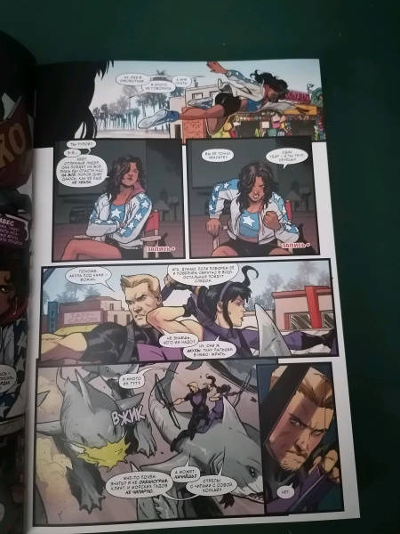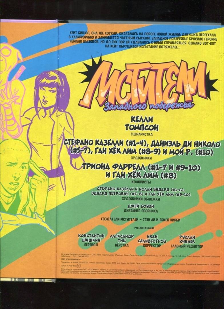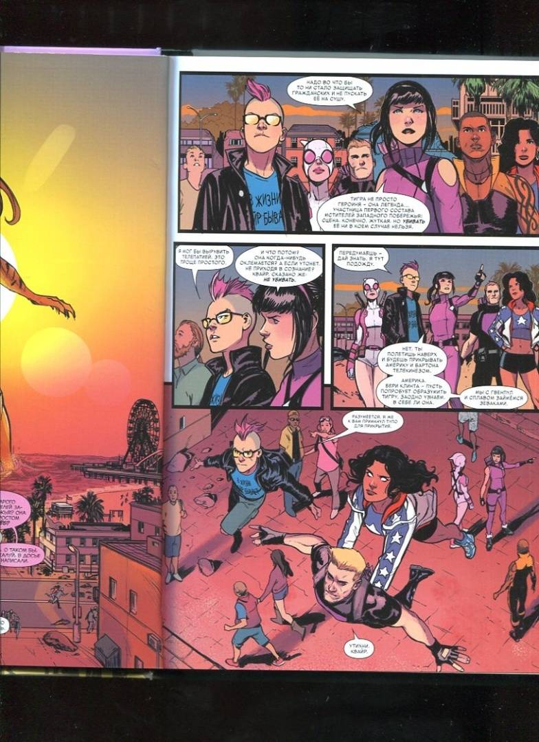 ОписаниеГрядёт новая эра в истории величайших героев Тихоокеанского побережья! Встречайте: Хоукай (ваша любимая Кейт Бишоп!), второй Хоукай (не менее любимый Клинт Бартон!), Америка Чавес, Кид Омега (Квентин Квайр!), Гвенпул (Гвендолин Пул!) и парень по прозвищу Сплав (а это кто?)! Всё верно: они - новые Мстители Западного побережья!И хочется верить, что им под силу спасти мир, ведь на него вот-вот обрушатся вампиры, женщины ростом с небоскрёб, местные Повелители Зла и целый косяк сухопутных акул. Держись, Калифорния! Бонус: без преувеличения классическая история о Хоукаях и грандиозный дебют Гвенпул!Грядёт новая эра в истории величайших героев Тихоокеанского побережья! Встречайте: Хоукай (ваша любимая Кейт Бишоп!), второй Хоукай (не менее любимый Клинт Бартон!), Америка Чавес, Кид Омега (Квентин Квайр!), Гвенпул (Гвендолин Пул!) и парень по прозвищу Сплав (а это кто?)! Всё верно: они - новые Мстители Западного побережья!И хочется верить, что им под силу спасти мир, ведь на него вот-вот обрушатся вампиры, женщины ростом с небоскрёб, местные Повелители Зла и целый косяк сухопутных акул. Держись, Калифорния! Бонус: без преувеличения классическая история о Хоукаях и грандиозный дебют Гвенпул!