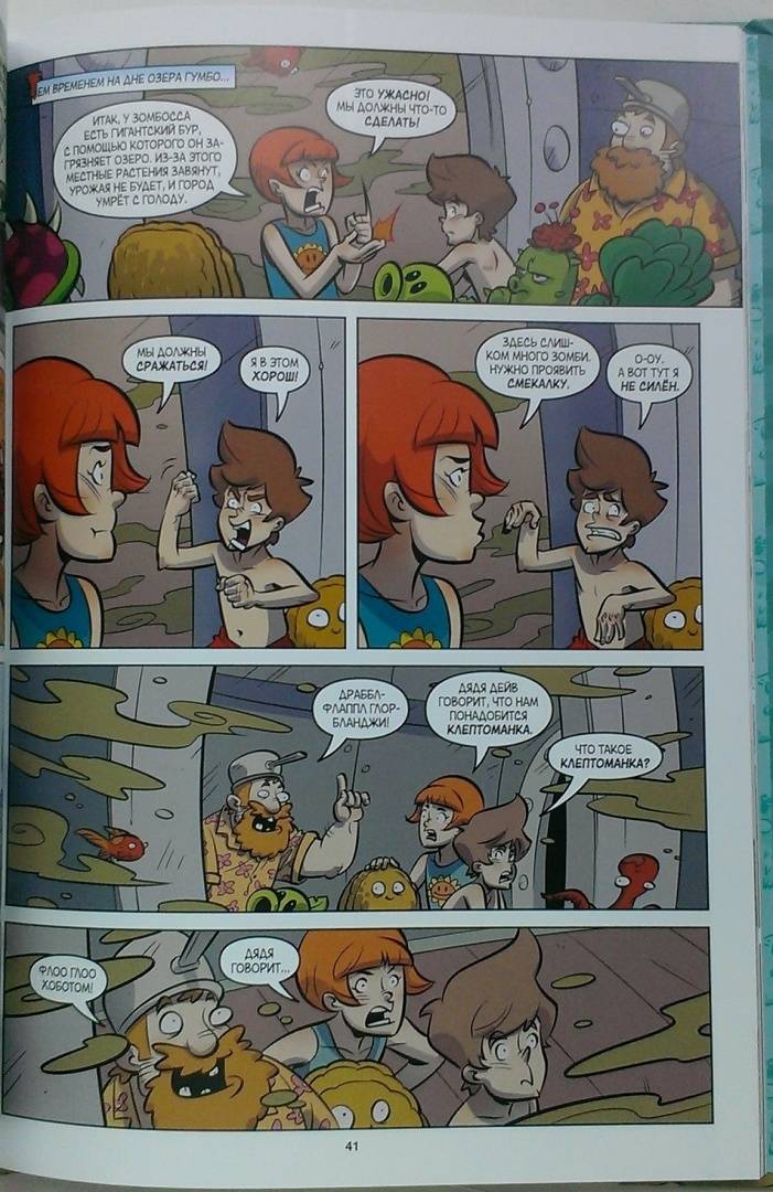 Битва растений и зомби за озеро!Стоило только доктору Зомбоссу наткнуться на озеро Гумбо, как на пляже тут же появились гаргантюа, зомби на тарзанке начали играть в пляжный волейбол, а сам Зомбосс завёл гигантский бур, чтобы загрязнить всю воду в озере. Защитники Соседвилля — Нейт, Патрисия и Безумный Дейв — узнают о неприятностях и хватают все растения, какие подвернутся под руку, чтобы справиться с новой угрозой!В книгу также включены дополнительные зомбистории.Да когда же у Зомбосса иссякнут новые зловещие идеи?! На этот раз он изобрел гигантский бур, чтобы загрязнить всю воду в озере неподалеку от Соседвилля. Грядет экологическая катастрофа городского масштаба, да и в пляжный волейбол теперь не поиграть!