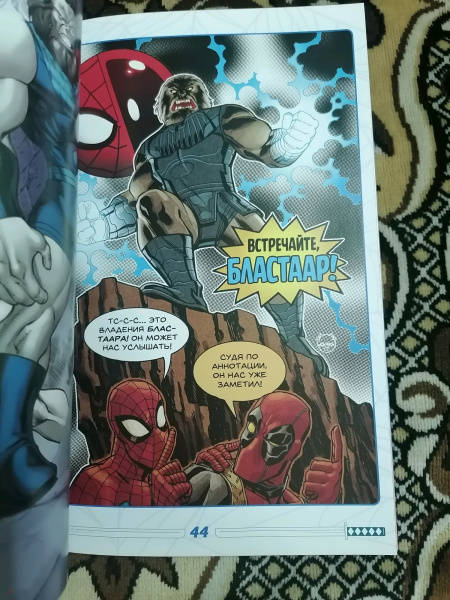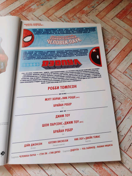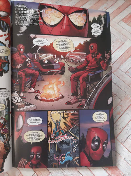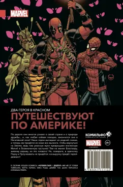 ОписаниеДва героя в красном путешествуют по Америке! По дороге они многое узнают о своей стране и о природе дружбы... и, как любая клёвая поездка, закончится она в Негативной зоне! Наши герои выпадают из родной стихии, и теперь им придётся из кожи вон вылезти, чтобы вернуться на Землю, ведь там ужасные жуки превращают вселенную Marvel в безжизненную пустыню! Тем не менее Бластаару, живому взрыву, на это плевать! Но, поверьте, в одиночку Пауку и Пулу воевать не придётся: на выручку придёт герой-девиант!В сборник вошли комиксы "Человек-паук / Дэдпул" #41-45 от Робби Томпсона, Мэтта Хорака, Ника Роше, Джима Тоу, Шона Парсонса и Брайана Ребера.Два героя в красном путешествуют по Америке! По дороге они многое узнают о своей стране и о природе дружбы... и, как любая клёвая поездка, закончится она в Негативной зоне! Наши герои выпадают из родной стихии, и теперь им придётся из кожи вон вылезти, чтобы вернуться на Землю, ведь там ужасные жуки превращают вселенную Marvel в безжизненную пустыню! Тем не менее Бластаару, живому взрыву, на это плевать! Но, поверьте, в одиночку Пауку и Пулу воевать не придётся: на выручку придёт герой-девиант!В сборник вошли комиксы "Человек-паук / Дэдпул" #41-45 от Робби Томпсона, Мэтта Хорака, Ника Роше, Джима Тоу, Шона Парсонса и Брайана Ребера.