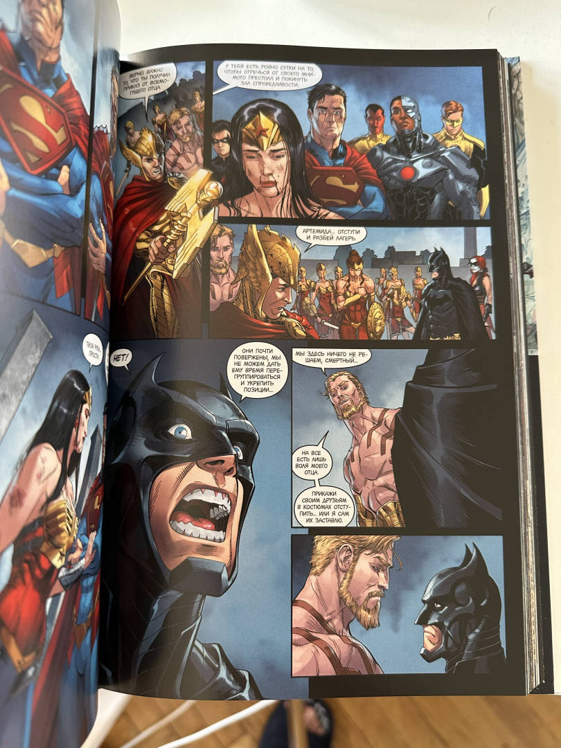 Но Бэтмен никогда не сдается. Крестоносец в Маске идет на отчаянный шаг – он обращается к Аресу, богу войны, с целью вовлечь весь греческий пантеон в войну с Суперменом. Да, возможно, Человек из Стали обладает силой, равной богу… но что случится, если криптонцу бросит вызов его самая верная союзница, дочь Зевса, – Чудо-Женщина?После того как Супермен и Лига Справедливости объявили себя верховной властью на Земле, Бэтмен стал первым, кто воспротивился установленному режиму. Темный Рыцарь собрал группу сопротивления, но долго она продержаться не смогла – повстанцы понесли большие потери…