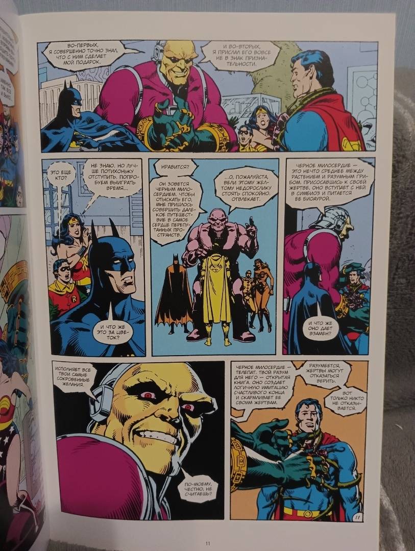 ОписаниеБэтмен, Чудо-Женщина и Робин пришли в Крепость Одиночества поздравить Супермена с днём рождения. Они находят друга погружённым в бессознательное состояние со странным цветком на груди. Это полуразумное растение питается человеческой аурой, для чего вступает в симбиоз с захваченной жертвой. Пока Чёрное Милосердие высасывает ауру, пленённое им существо видит сны, в которых исполняются все желания.