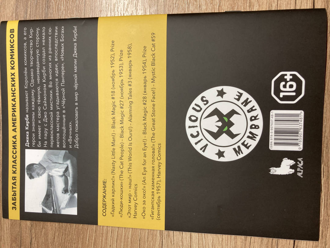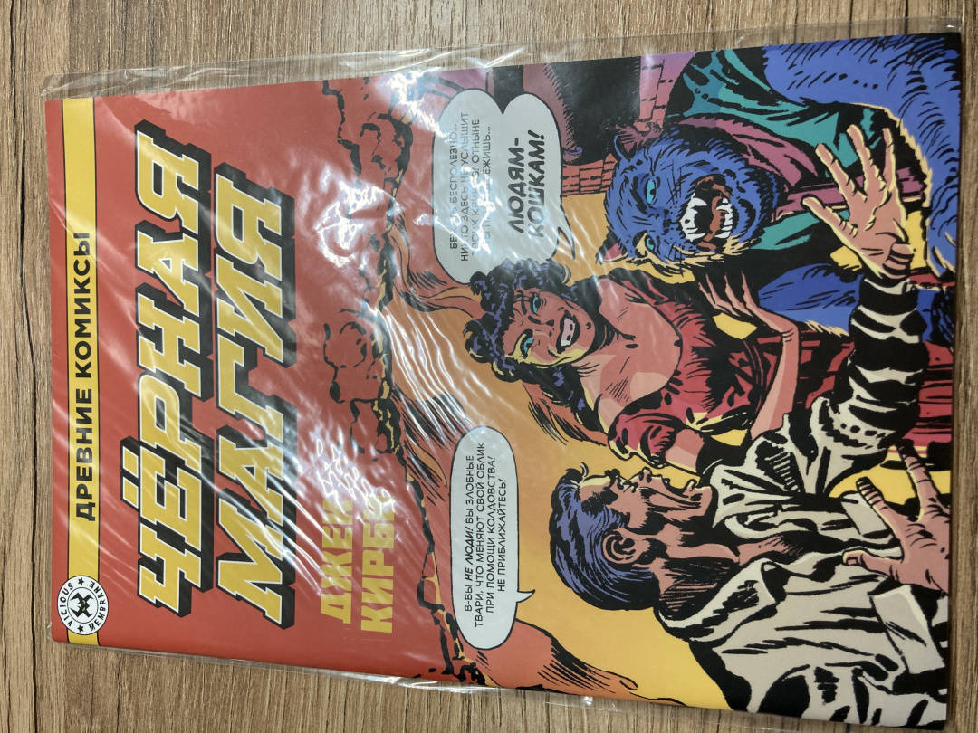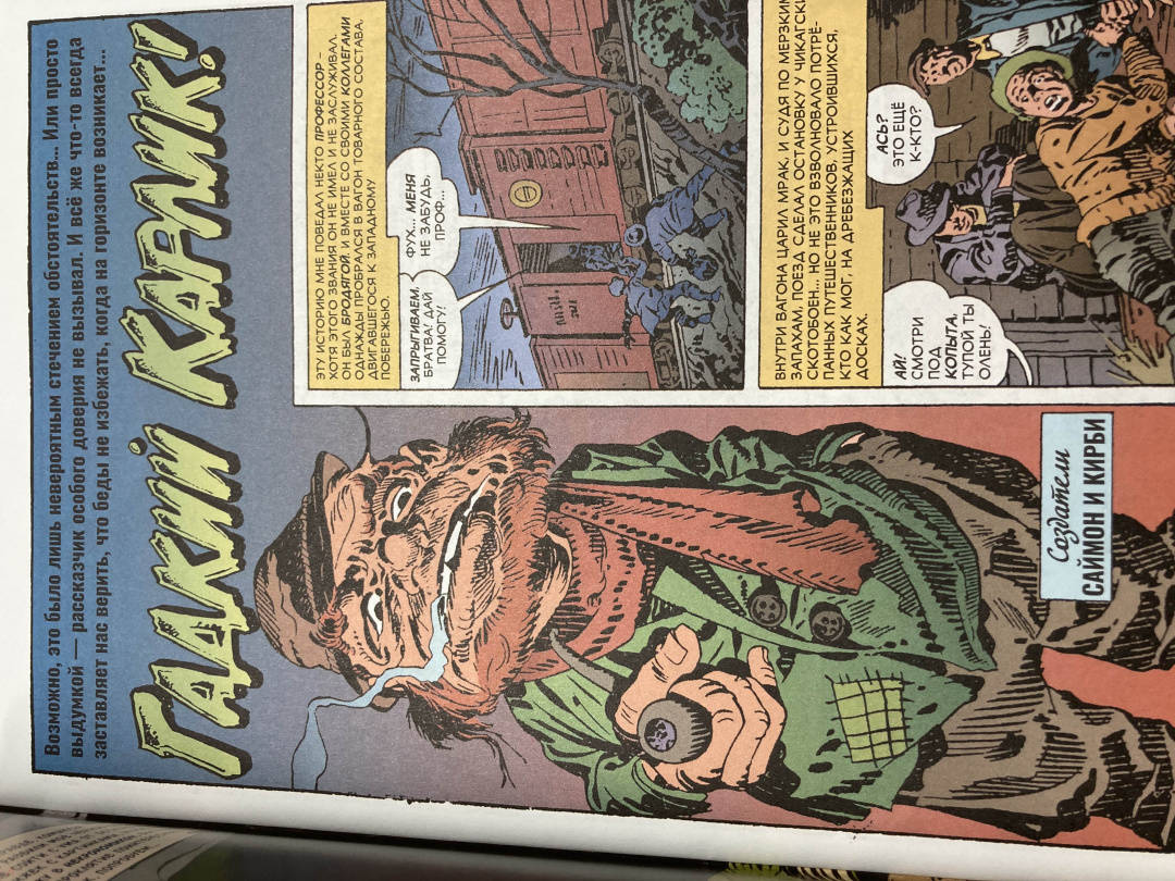 ОписаниеКаждый слышал о дуэте Джека Кирби и Стэна Ли, но мало, кто знает, что коронация Джека пришлась на период работы с Джо Саймоном. Их творческий тандем породил немало историй ужасов, в которой угадываются тропы, ведущие к появлению идей "Чёрной Пантеры", "Вечных" и "Новых Богов". Добро пожаловать в доселе неизведанное королевство кошмаров Джека Кирби!Содержание:"Око за око" (An Eye for an Eye) - Black Magic #28 (январь 1954), Prize"Люди-кошки" (The Cat People) - Black Magic #27 (ноябрь 1953), Prize "Гигантская каменная голова" (The Great Stone Face) - Black Cat #59 (Mystic) (сентябрь 1957) Harvey Comics"Этот мир - наш" (This World Is Ours) - Alarming Tales #3 (январь 1958), Harvey Comics"Гадкий карлик!" (Nasty Little Man!) - Black Magic #18 (ноябрь 1952), PrizeКаждый слышал о дуэте Джека Кирби и Стэна Ли, но мало, кто знает, что коронация Джека пришлась на период работы с Джо Саймоном. Их творческий тандем породил немало историй ужасов, в которой угадываются тропы, ведущие к появлению идей "Чёрной Пантеры", "Вечных" и "Новых Богов". Добро пожаловать в доселе неизведанное королевство кошмаров Джека Кирби!Содержание:"Око за око" (An Eye for an Eye) - Black Magic #28 (январь 1954), Prize"Люди-кошки" (The Cat People) - Black Magic #27 (ноябрь 1953), Prize "Гигантская каменная голова" (The Great Stone Face) - Black Cat #59 (Mystic) (сентябрь 1957) Harvey Comics"Этот мир - наш" (This World Is Ours) - Alarming Tales #3 (январь 1958), Harvey Comics"Гадкий карлик!" (Nasty Little Man!) - Black Magic #18 (ноябрь 1952), Prize