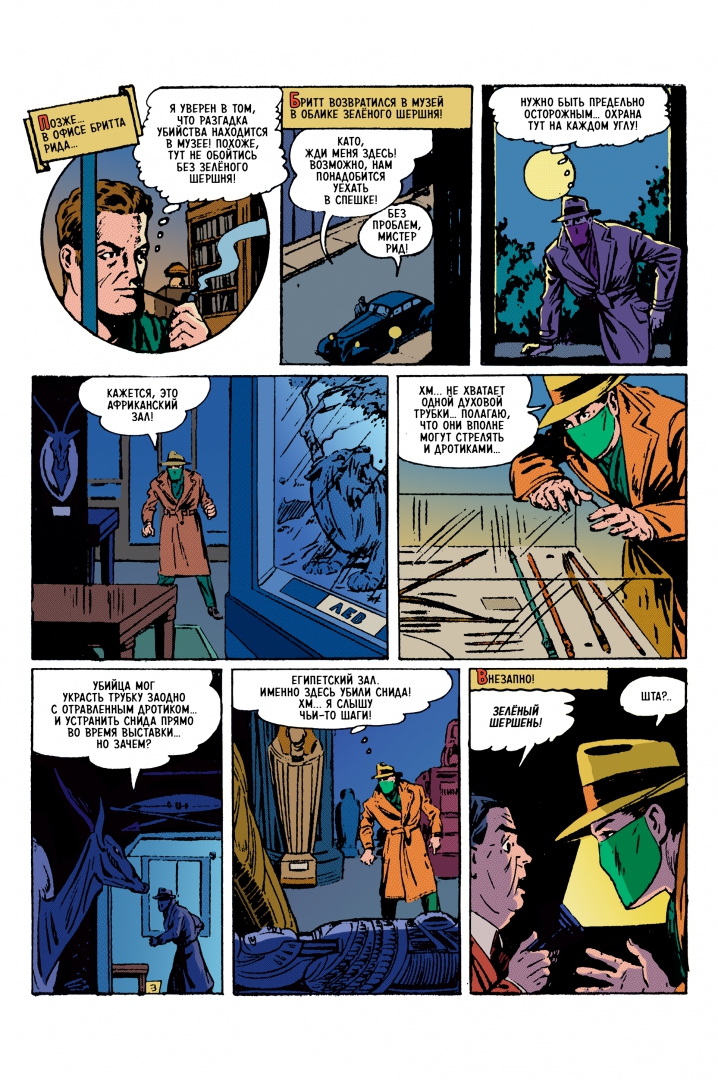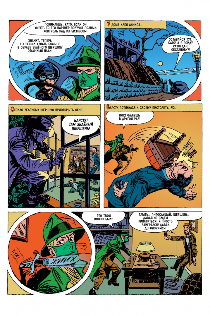 Описание"Зелёный Шершень" - один из самых ранних примеров мультимедийных персонажей. Появившись на коротких волнах радиопередач 1930-х годов, Шершень вскоре разлетелся по всем доступным медиа середины XX века: комиксам, кино и телевидению. А в телесериале 1967 года в роли Като, помощника Зелёного Шершня, дебютировал сам Брюс Ли! Современному зрителю Шершень может быть знаком по фильму 2011 года с Сетом Рогеном в главной роли. Комиксы про Зелёного Шершня выходят и по сей день в издательстве Dynamite, в 2010 году серию писал Кевин Смит. Мы пополняем галерею шляпного правосудия "Древних комиксов" приключениями Зелёного Шершня из журналов Harvey Comics 1940-х годов!"Зелёный Шершень" - один из самых ранних примеров мультимедийных персонажей. Появившись на коротких волнах радиопередач 1930-х годов, Шершень вскоре разлетелся по всем доступным медиа середины XX века: комиксам, кино и телевидению. А в телесериале 1967 года в роли Като, помощника Зелёного Шершня, дебютировал сам Брюс Ли! Современному зрителю Шершень может быть знаком по фильму 2011 года с Сетом Рогеном в главной роли. Комиксы про Зелёного Шершня выходят и по сей день в издательстве Dynamite, в 2010 году серию писал Кевин Смит. Мы пополняем галерею шляпного правосудия "Древних комиксов" приключениями Зелёного Шершня из журналов Harvey Comics 1940-х годов!