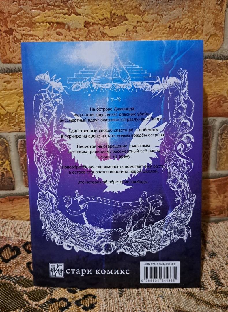 ОписаниеНа острове Джананда, куда отовсюду свозят опасных убийц, Бессмертный вдруг оказывается разлучён с Пиоран. Единственный способ спасти её - победить в турнире на арене и стать новым вождём острова. Несмотря на отвращение к местным жестоким традициям, Бессмертный всё равно выходит на арену. Новообретённая сдержанность помогает ему расти, а остров становится поистине новой школой.Это история об обретении свободы.На острове Джананда, куда отовсюду свозят опасных убийц, Бессмертный вдруг оказывается разлучён с Пиоран. Единственный способ спасти её - победить в турнире на арене и стать новым вождём острова. Несмотря на отвращение к местным жестоким традициям, Бессмертный всё равно выходит на арену. Новообретённая сдержанность помогает ему расти, а остров становится поистине новой школой.Это история об обретении свободы.