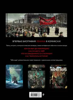 ОписаниеВпервые биография Ленина в комиксах! Тайны, интриги, коммунистические заговоры, самые интересные события из жизни вождя. Кем он был до революции? Как он шел к ней? Что их объединяло со Сталиным? Как творилась история? Тебя ждет увлекательное повествование с красочными иллюстрациями.Впервые биография Ленина в комиксах! Тайны, интриги, коммунистические заговоры, самые интересные события из жизни вождя. Кем он был до революции? Как он шел к ней? Что их объединяло со Сталиным? Как творилась история? Тебя ждет увлекательное повествование с красочными иллюстрациями.