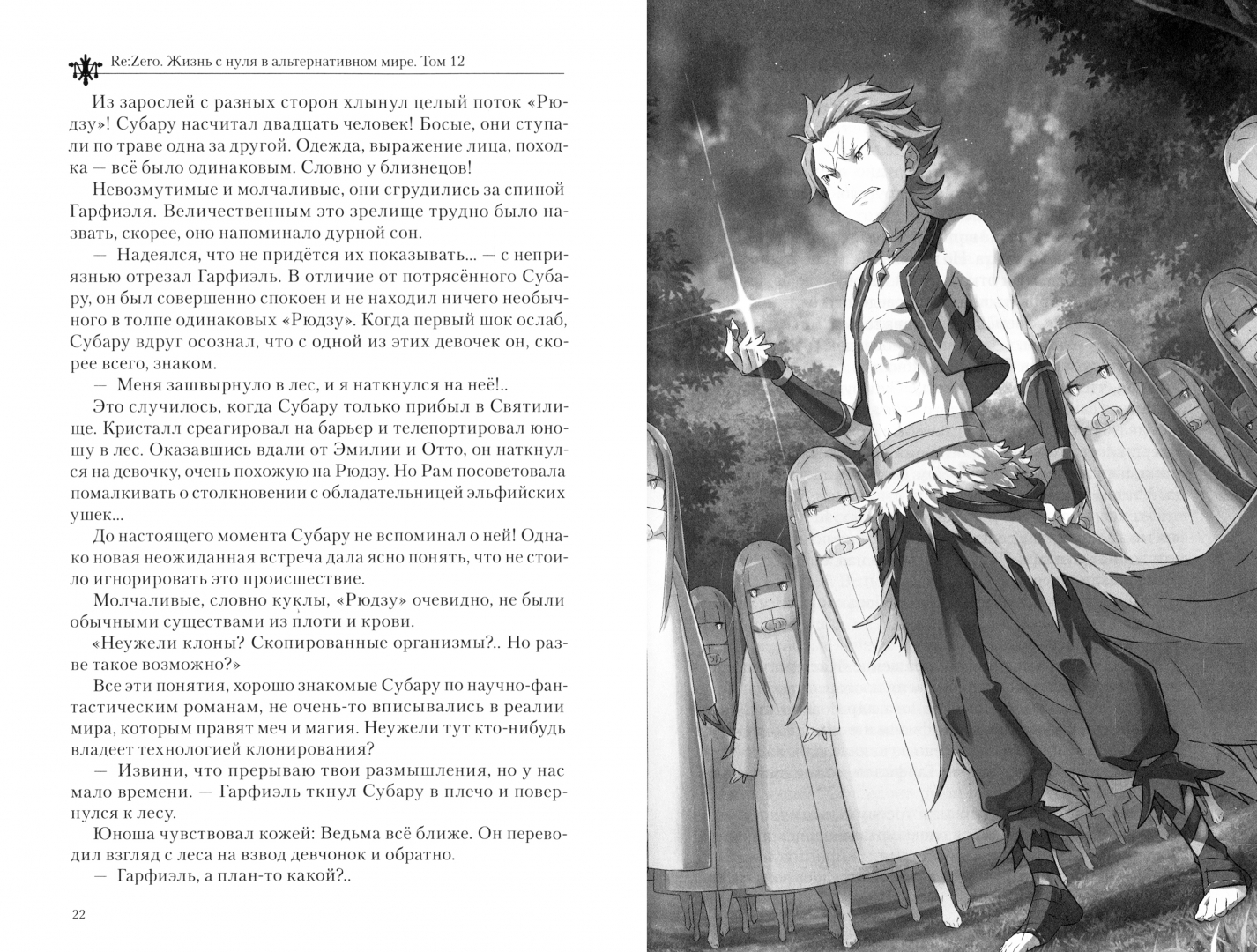 ОписаниеГробница продолжает испытывать Субару на прочность, и вот, когда герой вступает в четвёртый круг жизни, судьба сталкивает его с ужасной Ведьмой Зависти! Однако помощь приходит, откуда её не ждали, - от Гарфиэля! Но расслабляться слишком рано! Узнав, почему Святилище называют испытательным полигоном, Субару ищет новой встречи с Ведьмой Жадности, ведь лишь она способна указать выход из этого адского круга. Впрочем, чтобы вновь увидеть Ехидну, юноше необходимо пройти второй этап Испытания..."Узри немыслимое настоящее!"Встречайте двенадцатый том, полный горьких сожалений и надежды!Гробница продолжает испытывать Субару на прочность, и вот, когда герой вступает в четвёртый круг жизни, судьба сталкивает его с ужасной Ведьмой Зависти! Однако помощь приходит, откуда её не ждали, - от Гарфиэля! Но расслабляться слишком рано! Узнав, почему Святилище называют испытательным полигоном, Субару ищет новой встречи с Ведьмой Жадности, ведь лишь она способна указать выход из этого адского круга. Впрочем, чтобы вновь увидеть Ехидну, юноше необходимо пройти второй этап Испытания..."Узри немыслимое настоящее!"Встречайте двенадцатый том, полный горьких сожалений и надежды!
