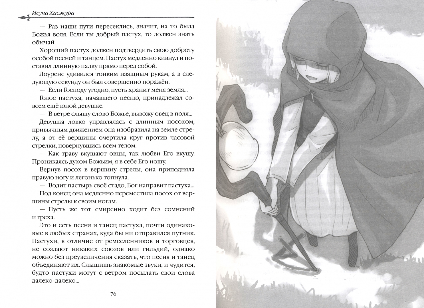 ОписаниеТорговец продолжает своё путешествие с Мудрой Волчицей Холо. Хорошо заработав в городе Пассио, Лоуренс продаёт первосортный перец, покупает доспехи и затевает очень выгодную сделку в северном церковном городе Рюбинхайгене, воротах в земли язычников. Но он попадается в расставленные сети, и даже Холо, зовущая себя Мудрой Волчицей, не сразу может сообразить, как выпутаться из беды.Фортуна отвернулась от Лоуренса, время расплаты приближается, и это не сулит ему ничего хорошего. Возможно, даже придётся оставить ремесло торговца. Однако герои не спешат сдаваться. Для выполнения хитроумного плана Лоуренс и Холо зовут на помощь пастушку, которую повстречали по пути в Рюбинхайген.Торговец продолжает своё путешествие с Мудрой Волчицей Холо. Хорошо заработав в городе Пассио, Лоуренс продаёт первосортный перец, покупает доспехи и затевает очень выгодную сделку в северном церковном городе Рюбинхайгене, воротах в земли язычников. Но он попадается в расставленные сети, и даже Холо, зовущая себя Мудрой Волчицей, не сразу может сообразить, как выпутаться из беды.Фортуна отвернулась от Лоуренса, время расплаты приближается, и это не сулит ему ничего хорошего. Возможно, даже придётся оставить ремесло торговца. Однако герои не спешат сдаваться. Для выполнения хитроумного плана Лоуренс и Холо зовут на помощь пастушку, которую повстречали по пути в Рюбинхайген.