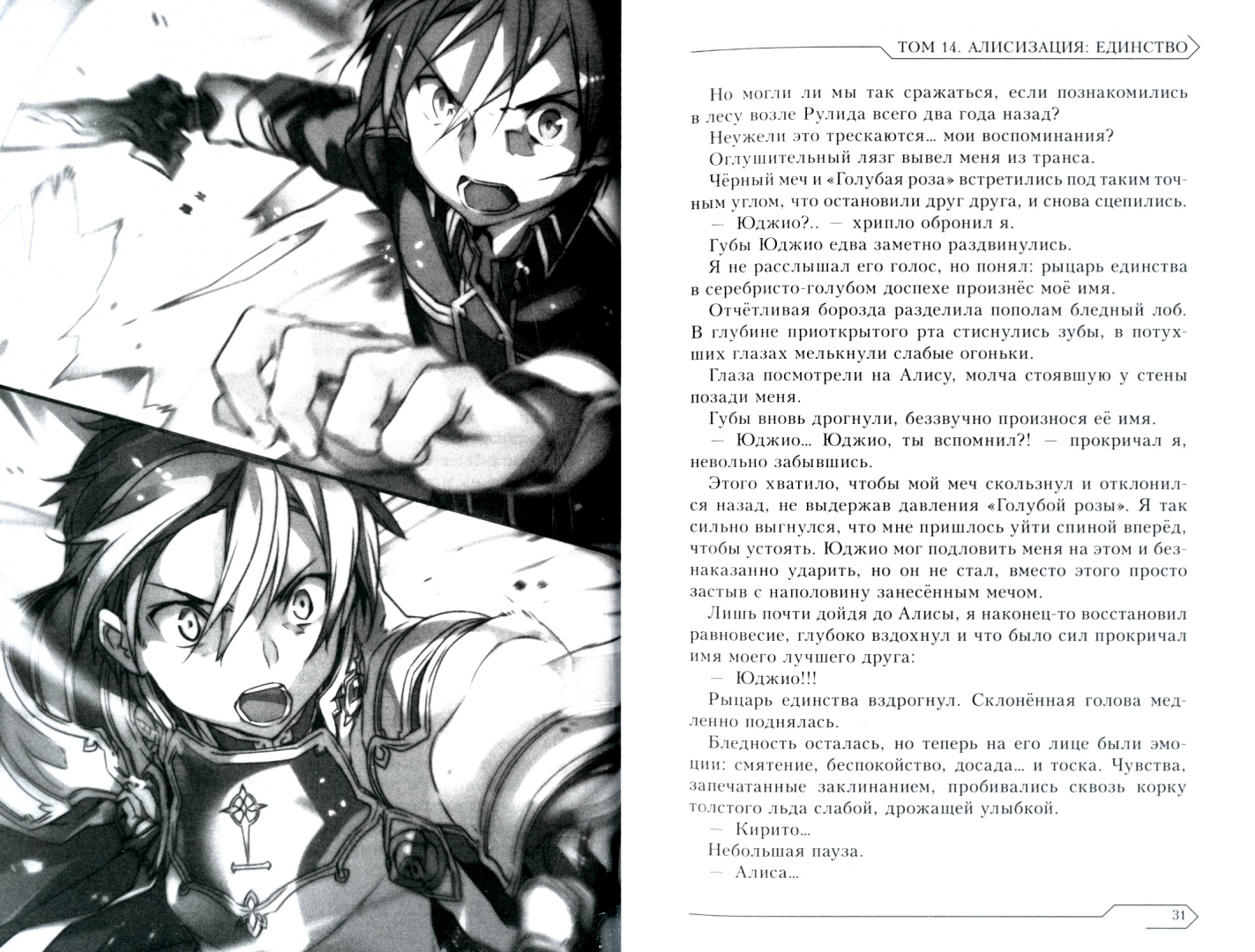 ОписаниеБелоснежная башня Центрального собора - символ власти Церкви Аксиом. Заручившись помощью мудрой Кардинал, живущей в отрезанной от мира библиотеке, Юджио и Кирито направляются на самый верхний, сотый этаж собора, где их поджидает Первосвященница Администратор. Юджио стремится туда, чтобы превратить Алису из рыцаря единства в того, кем она должна быть; а Кирито - чтобы спасти Андерворлд от гибели.Но на девяносто девятом этаже перед Кирито и Алисой появляется Юджио в доспехах рыцаря единства и с ледяным блеском в глазах. Юджио без малейших колебаний выхватывает клинок, и Кирито вынужден защищаться. Неужели настало время битвы, которую он предчувствовал, ещё когда услышал далёкие раскаты грома в день начала путешествия? Достучатся ли отчаянные мольбы Кирито до души Юджио?Окончание подцикла "мир людей" цикла "Алисизация"!Белоснежная башня Центрального собора - символ власти Церкви Аксиом. Заручившись помощью мудрой Кардинал, живущей в отрезанной от мира библиотеке, Юджио и Кирито направляются на самый верхний, сотый этаж собора, где их поджидает Первосвященница Администратор. Юджио стремится туда, чтобы превратить Алису из рыцаря единства в того, кем она должна быть; а Кирито - чтобы спасти Андерворлд от гибели.Но на девяносто девятом этаже перед Кирито и Алисой появляется Юджио в доспехах рыцаря единства и с ледяным блеском в глазах. Юджио без малейших колебаний выхватывает клинок, и Кирито вынужден защищаться. Неужели настало время битвы, которую он предчувствовал, ещё когда услышал далёкие раскаты грома в день начала путешествия? Достучатся ли отчаянные мольбы Кирито до души Юджио?Окончание подцикла "мир людей" цикла "Алисизация"!