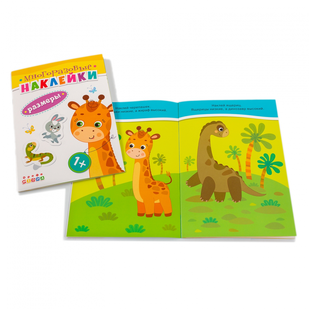 Книжка. Многоразовые наклейки. Размеры (1+)