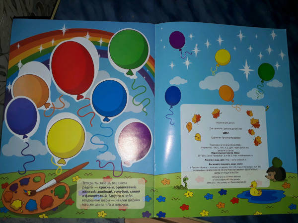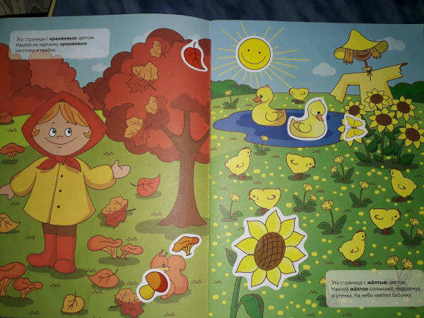 ОписаниеКниги серии "Развиваюсь и играю" предназначены для занятий с малышами от 1 года. Задания сформулированы просто и понятно для ребенка, а большие наклейки удобно держать в ручке и наклеивать на страничку.Выполняя задания и приклеивая наклейки, ребенок:- учится воспринимать информацию;- развивает абстрактное мышление и интеллект;- познает окружающий мир.Работа с наклейками способствует развитию мелкой моторики, точности и координации движений.Эта красивая книга с яркими детскими иллюстрациями не только поможет ребенку в познании мира, но и доставит малышу и родителям много приятных минут, проведенных вместе.О чем книгаЗнакомство с цветом можно превратить в увлекательную игру! Каждая страница этой книги посвящена одному цвету радуги, всего семь цветов: красный, оранжевый, желтый, зеленый, голубой, синий и фиолетовый. Сюжеты будут понятны и интересны малышам: красные и фиолетовые ягоды и фрукты, желтое солнышко и цыплята, зеленые овощи на грядках, оранжевые грибы лисички и осенний лес, синее море и любимая кукла Мальвина с голубыми волосами. А в конце книги малыш сможет запустить в небо разноцветные воздушные шары!Почему решили издать- Интересные и веселые задания- Яркие наклейки большого размера- Красивые иллюстрации- Удобный формат книгиДля кого эта книгаДля занятий с детьми от 1 года.СвернутьКниги серии "Развиваюсь и играю" предназначены для занятий с малышами от 1 года. Задания сформулированы просто и понятно для ребенка, а большие наклейки удобно держать в ручке и наклеивать на страничку.Выполняя задания и приклеивая наклейки, ребенок:- учится воспринимать информацию;- развивает абстрактное мышление и интеллект;- познает окружающий мир.Работа с наклейками способствует развитию мелкой моторики, точности и координации движений.Эта красивая книга с яркими детскими иллюстрациями не только поможет ребенку в познании мира, но и доставит малышу и родителям много приятных минут, проведенных вместе.О чем книгаЗнакомство с цветом можно превратить в увлекательную игру! Каждая страница этой книги посвящена одному цвету радуги, всего семь цветов: красный, оранжевый, желтый, зеленый, голубой, синий и фиолетовый. Сюжеты будут понятны и интересны малышам: красные и фиолетовые ягоды и фрукты, желтое солнышко и цыплята, зеленые овощи на грядках, оранжевые грибы лисички и осенний лес, синее море и любимая кукла Мальвина с голубыми волосами. А в конце книги малыш сможет запустить в небо разноцветные воздушные шары!Почему решили издать- Интересные и веселые задания- Яркие наклейки большого размера- Красивые иллюстрации- Удобный формат книгиДля кого эта книгаДля занятий с детьми от 1 года.СвернутьСвернуть