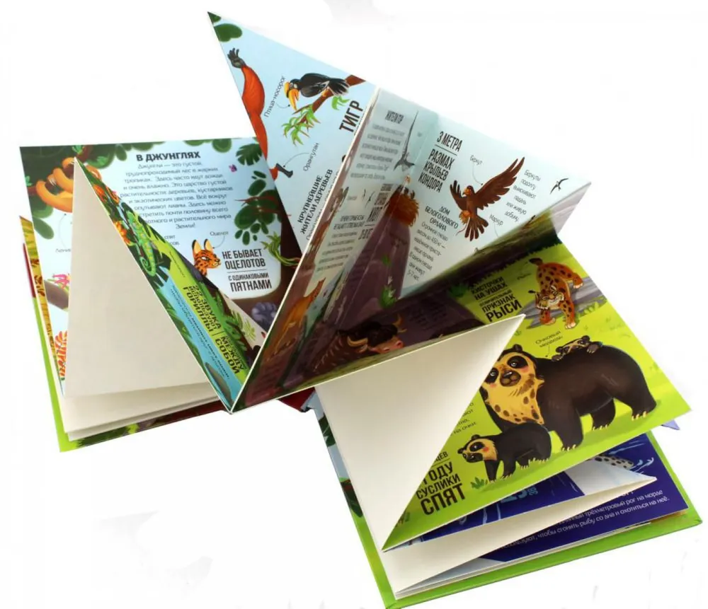 ОписаниеКнижка-трансформер. Животные "Серия «Книжка-трансформер» — это знания о мире в удивительном формате! С книгой «Животные» ребёнок отправится в кругосветное путешествие по местам обитания зверей, птиц и рыб. Малыш узнает множество интересных фактов о жителях лесов и гор, познакомится с животным миром джунглей и саванн и выяснит, как приспосабливаются к суровым природным условиям обитатели полюсов и морей. Страницы книги раскрываются как головоломка-оригами и увеличиваются в 4 раза — так изучение новой информации становится увлекательной игрой,..