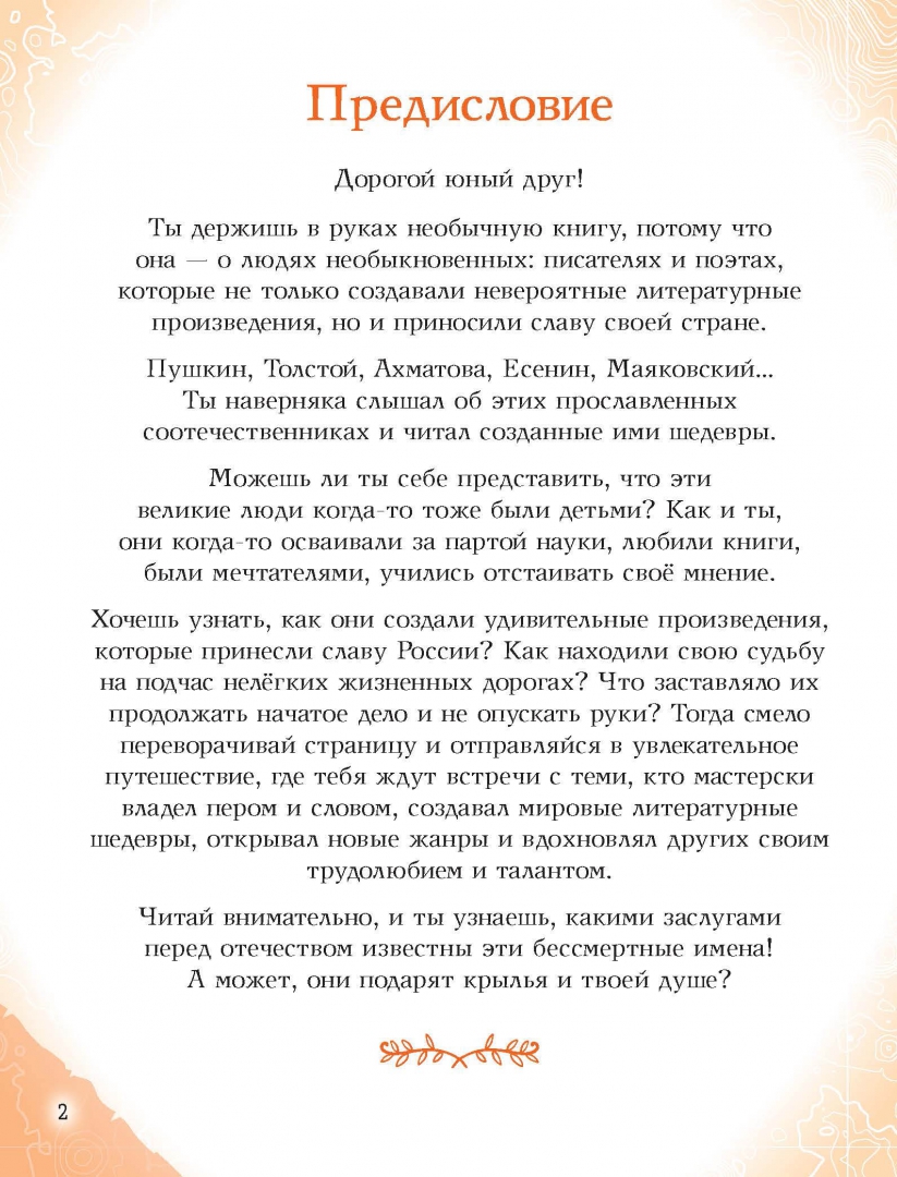 ОписаниеЭта книга патриотической серии "Великие люди великой страны" рассказывает о двадцати наших знаменитых соотечественниках - поэтах, прозаиках, баснописцах, публицистах, издателях и драматургах, чьи имена навсегда останутся в истории России. Кто положил основу современному русскому языку? Какой писатель стал лауреатом Нобелевской премии по литературе? Чьи произведения были переведены на 50 языков мира? Захватывающие сюжеты в жанре нарративного нонфикшена, исторических "детективов" и "боевиков"! В каждом рассказе - вдохновляющая читателей на собственные свершения история успеха, невероятный пример силы воли и стойкости характера! Динамичные, запоминающиеся, современные, яркие иллюстрации созданы специально для этой книги!Издание предназначено для среднего школьного возраста, однако будет интересно и взрослым, а также станет неповторимым подарком по любому поводу для всех, кто любит Россию и гордится ею. Читайте всей семьёй и узнавайте всё самое интересное о великих людях нашей страны!СвернутьЭта книга патриотической серии "Великие люди великой страны" рассказывает о двадцати наших знаменитых соотечественниках - поэтах, прозаиках, баснописцах, публицистах, издателях и драматургах, чьи имена навсегда останутся в истории России. Кто положил основу современному русскому языку? Какой писатель стал лауреатом Нобелевской премии по литературе? Чьи произведения были переведены на 50 языков мира? Захватывающие сюжеты в жанре нарративного нонфикшена, исторических "детективов" и "боевиков"! В каждом рассказе - вдохновляющая читателей на собственные свершения история успеха, невероятный пример силы воли и стойкости характера! Динамичные, запоминающиеся, современные, яркие иллюстрации созданы специально для этой книги!Издание предназначено для среднего школьного возраста, однако будет интересно и взрослым, а также станет неповторимым подарком по любому поводу для всех, кто любит Россию и гордится ею. Читайте всей семьёй и узнавайте всё самое интересное о великих людях нашей страны!СвернутьСвернуть