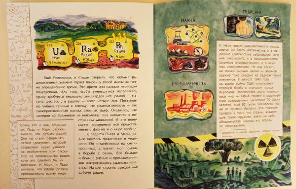 ОписаниеОткрытие радиоактивности изменило мир физики и химии. Она используется в медицине, в археологии, промышленности и сельском хозяйстве. Благодаря радиоактивному распаду атомные электростанции вырабатывают электричество. Эта книга расскажет и об опасностях, которые несёт с собой радиация. Но главное - об авторе уникального открытия, Мари Кюри, которая не только покорила мир науки, но и открыла туда дорогу другим женщинам.Для младшего школьного возраста.3-е издание.Открытие радиоактивности изменило мир физики и химии. Она используется в медицине, в археологии, промышленности и сельском хозяйстве. Благодаря радиоактивному распаду атомные электростанции вырабатывают электричество. Эта книга расскажет и об опасностях, которые несёт с собой радиация. Но главное - об авторе уникального открытия, Мари Кюри, которая не только покорила мир науки, но и открыла туда дорогу другим женщинам.Для младшего школьного возраста.3-е издание.