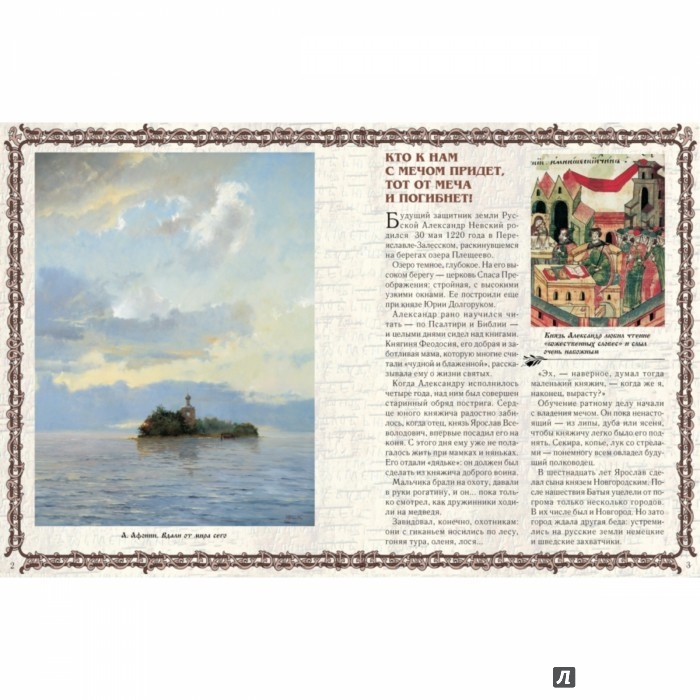 ОписаниеКнязь Александр Невский был полководцем, не проигравшим ни одного сражения. Победив шведов на реке Неве, он получил почетное прозвание Невский. Одержал победу и в Ледовом побоище на Чудском озере. Его святые мощи лежат в Александро-Невском монастыре.Для чтения взрослыми детям.Князь Александр Невский был полководцем, не проигравшим ни одного сражения. Победив шведов на реке Неве, он получил почетное прозвание Невский. Одержал победу и в Ледовом побоище на Чудском озере. Его святые мощи лежат в Александро-Невском монастыре.Для чтения взрослыми детям.