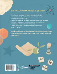 Каждый разворот — отдельная история жизни, рассказанная Андреем Чупиным с невероятной добротой и юмором. Оригинальные и современные иллюстрации Гульнары и Эльвиры Нисаповых еще больше раскрывают героев и делают чтение увлекательней. Книга отлично расширяет кругозор, рассказывает о великих гениях разных эпох и сфер, помогает читателю поверить в свою мечту.