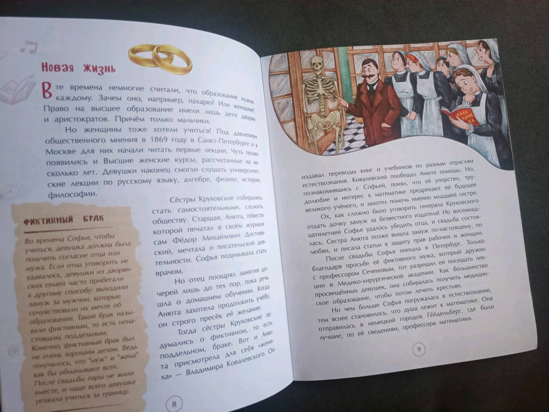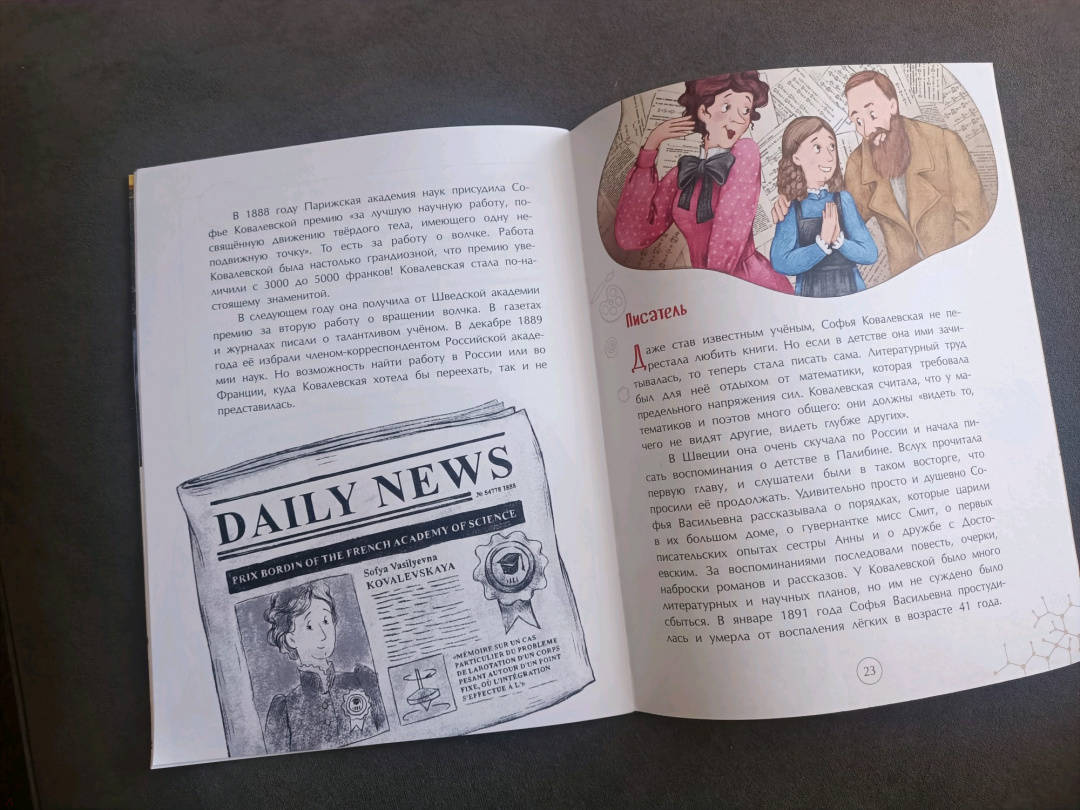 ОписаниеДва столетия назад считалось, что единственное подходящее занятие для женщины - растить детей, заботиться о муже и вести домашнее хозяйство. Софья Ковалевская не только разобралась в сложной науке математике - она стала великолепным учёным. Её открытия продвинули науку, показали, что ум и способности не зависят от пола, и проложили дорогу к знаниям миллионам женщин.Для младшего школьного возраста.Два столетия назад считалось, что единственное подходящее занятие для женщины - растить детей, заботиться о муже и вести домашнее хозяйство. Софья Ковалевская не только разобралась в сложной науке математике - она стала великолепным учёным. Её открытия продвинули науку, показали, что ум и способности не зависят от пола, и проложили дорогу к знаниям миллионам женщин.Для младшего школьного возраста.