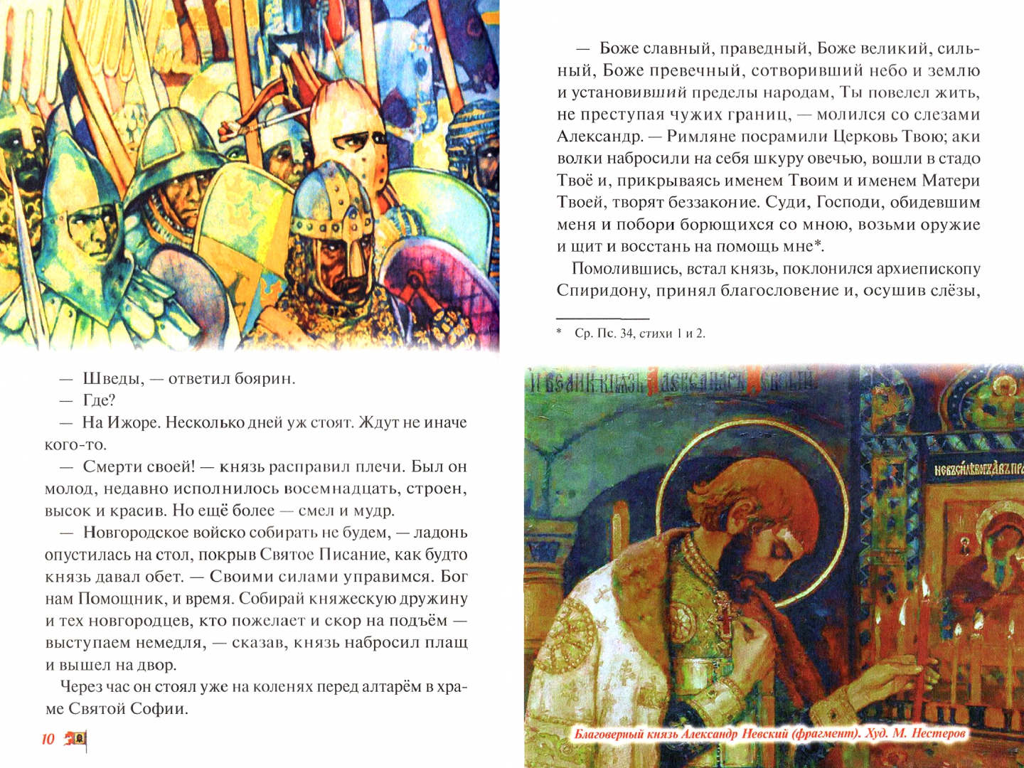 ОписаниеXIII век был очень трудным для Руси: с востока шли монгольские орды, уничтожая на своём пути, а с запада - католические рыцари, которые хотели не только захватить Русь, но и уничтожить самое главное - Спасительную православную веру. В этот грозный час Промыслом Божиим встал на защиту Руси святой князь Александр. И в 1240 году на Неве, в своей первой битве, разбил врага. Князю в это время не было и двадцати лет.Допущено к распространению Издательским советом РПЦ.XIII век был очень трудным для Руси: с востока шли монгольские орды, уничтожая на своём пути, а с запада - католические рыцари, которые хотели не только захватить Русь, но и уничтожить самое главное - Спасительную православную веру. В этот грозный час Промыслом Божиим встал на защиту Руси святой князь Александр. И в 1240 году на Неве, в своей первой битве, разбил врага. Князю в это время не было и двадцати лет.Допущено к распространению Издательским советом РПЦ.