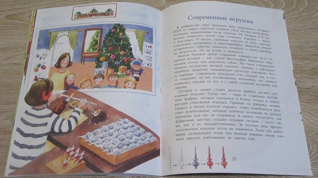 ОписаниеГирлянды с фонариками, блестящие шары, игрушки самых разных форм и размеров, мишура… Вместе с наряженной ёлкой в дом приходит настоящий праздник. Какими бывают новогодние игрушки, как и когда они были придуманы? История новогодних игрушек - это и семейная история, и история нашей страны.Для младшего школьного возраста.5-е издание.Гирлянды с фонариками, блестящие шары, игрушки самых разных форм и размеров, мишура… Вместе с наряженной ёлкой в дом приходит настоящий праздник. Какими бывают новогодние игрушки, как и когда они были придуманы? История новогодних игрушек - это и семейная история, и история нашей страны.Для младшего школьного возраста.5-е издание.