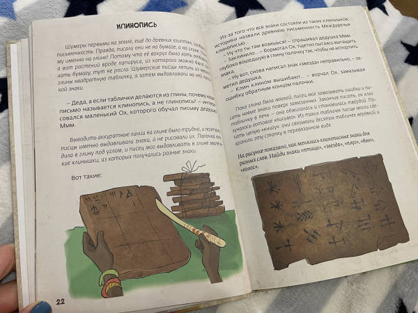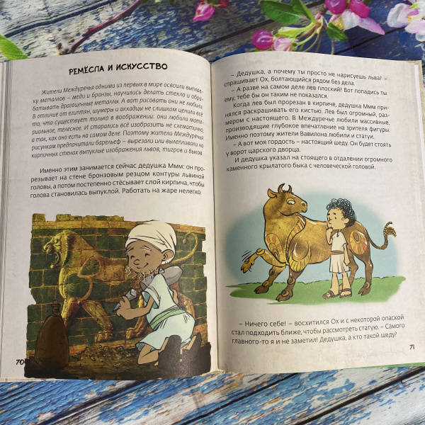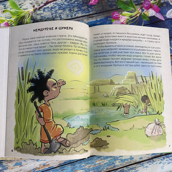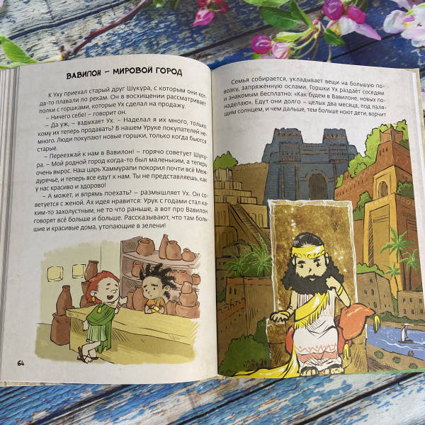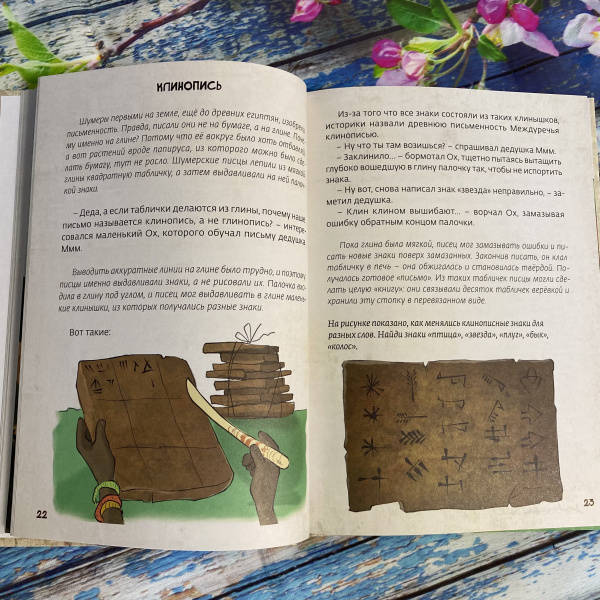 ОписаниеПеред вами третья книга серии "Истории об истории". Её герои - находчивый крестьянин Ух, его жена Ах, их многочисленные дети, родственники и соседи - живут в Междуречье, древней стране, которая дала миру много удивительных изобретений и открытий. Несколько тысячелетий назад здесь впервые научились использовать колесо, наблюдать за звездами и планетами, сочинили великие поэмы и приняли самые совершенные на тот момент законы. Игровые задания на страницах книги сделают путешествие читателя в глубины истории ещё увлекательнее. Книга предназначена для дошкольников и младших школьников.Перед вами третья книга серии "Истории об истории". Её герои - находчивый крестьянин Ух, его жена Ах, их многочисленные дети, родственники и соседи - живут в Междуречье, древней стране, которая дала миру много удивительных изобретений и открытий. Несколько тысячелетий назад здесь впервые научились использовать колесо, наблюдать за звездами и планетами, сочинили великие поэмы и приняли самые совершенные на тот момент законы. Игровые задания на страницах книги сделают путешествие читателя в глубины истории ещё увлекательнее. Книга предназначена для дошкольников и младших школьников.