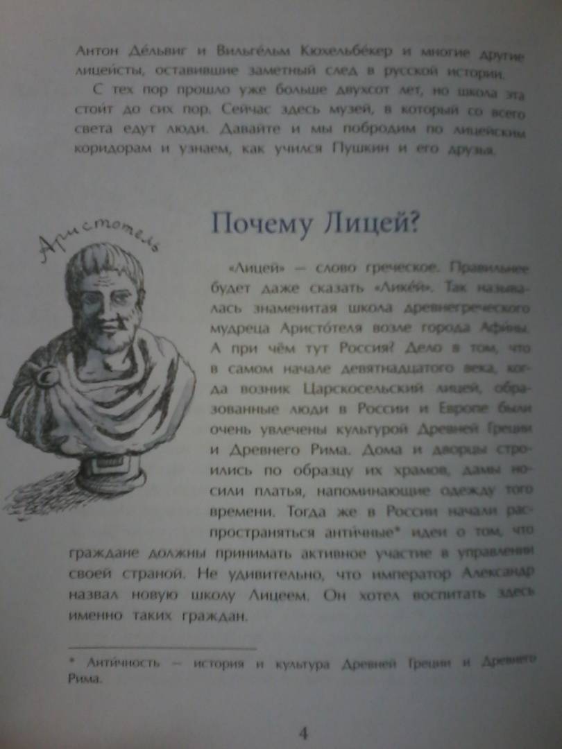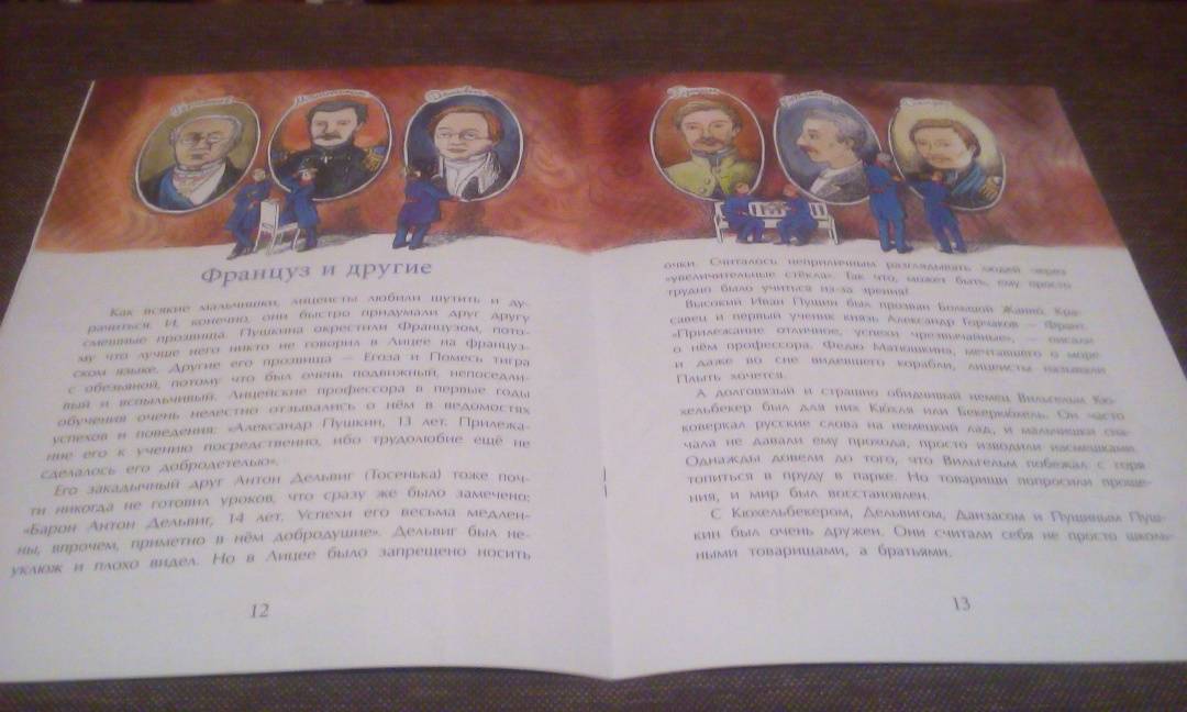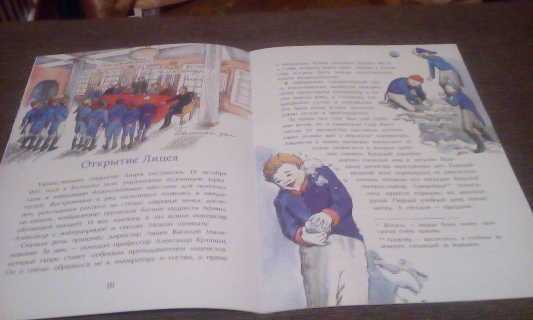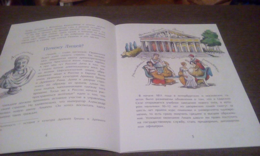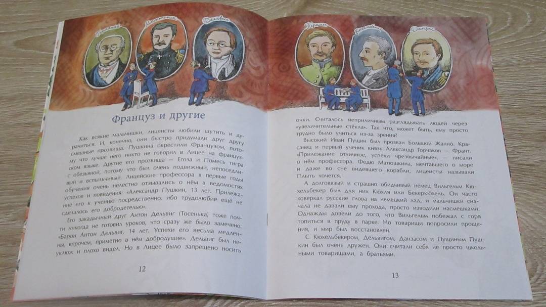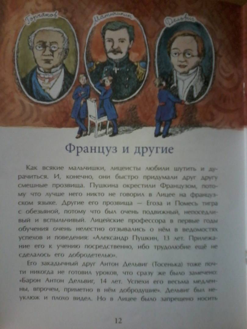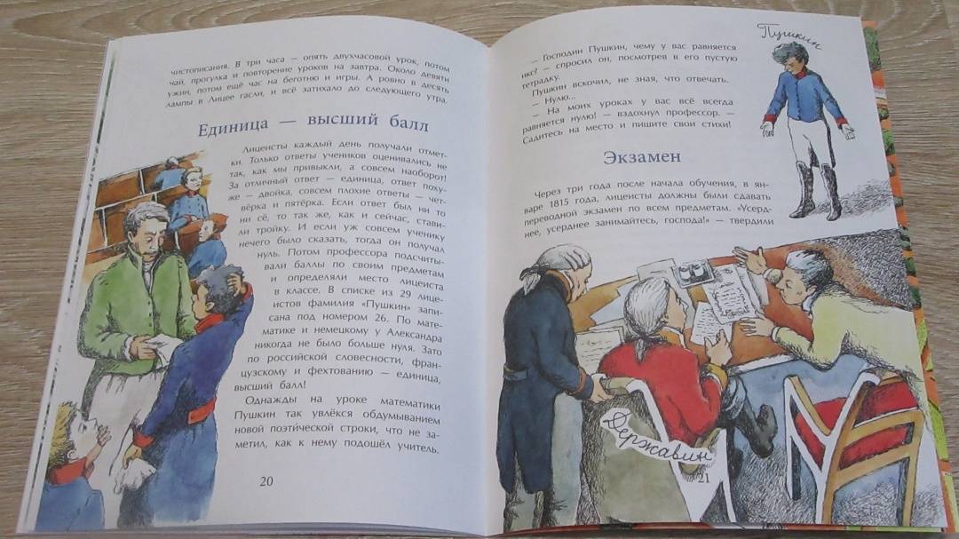 ОписаниеАлександру Сергеевичу Пушкину довелось учиться в удивительной школе - Императорском Царскосельском лицее. Там он впервые почувствовал своё призвание и обрел настоящих друзей. Эта книга о том, как была устроена жизнь Лицея, многие из выпускников которого оставили след в русской истории, и, конечно, о его самом знаменитом, самом первом его классе, в котором учился Пушкин.Для младшего школьного возраста.3-е издание.Александру Сергеевичу Пушкину довелось учиться в удивительной школе - Императорском Царскосельском лицее. Там он впервые почувствовал своё призвание и обрел настоящих друзей. Эта книга о том, как была устроена жизнь Лицея, многие из выпускников которого оставили след в русской истории, и, конечно, о его самом знаменитом, самом первом его классе, в котором учился Пушкин.Для младшего школьного возраста.3-е издание.