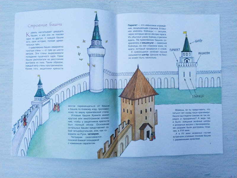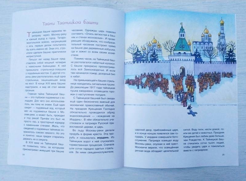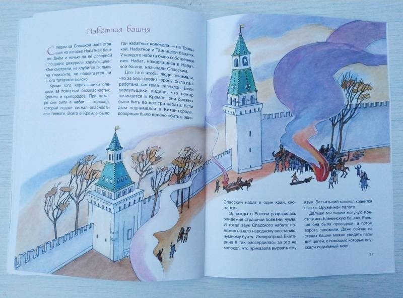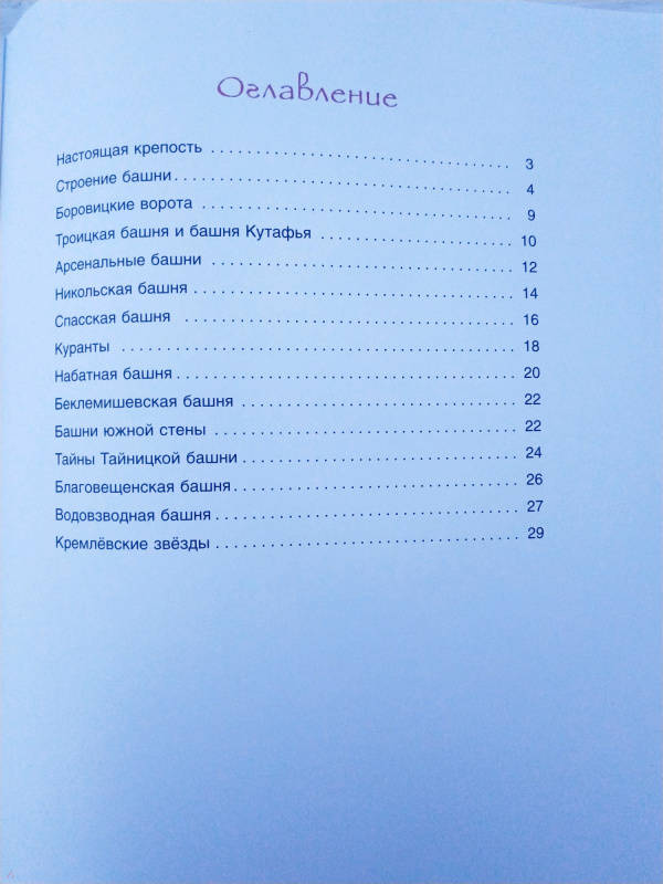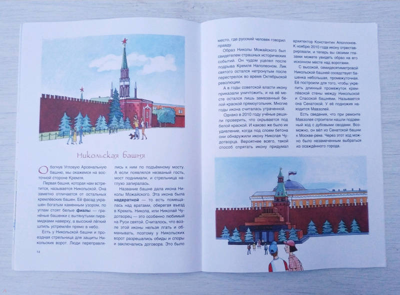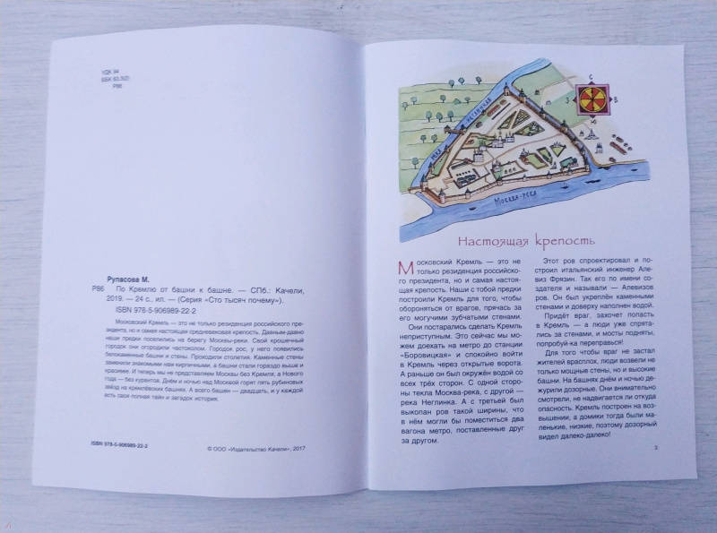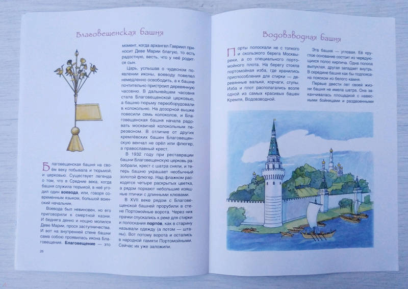 ОписаниеМосковский Кремль - это не только резиденция российского президента, но и самая настоящая средневековая крепость. Давным-давно наши предки поселились на берегу Москвы-реки. Свой крошечный городок они огородили частоколом. Городок рос, у него появились белокаменные башни и стены. Проходили столетия. Каменные стены заменили знакомыми нам кирпичными, а башни стали гораздо выше и красивее. И теперь мы не представляем Москвы без Кремля, а Нового года - без курантов. Днём и ночью над Москвой горят пять рубиновых звёзд на кремлёвских башнях. А всего башен - двадцать, и у каждой есть своя полная тайн и загадок история.Московский Кремль - это не только резиденция российского президента, но и самая настоящая средневековая крепость. Давным-давно наши предки поселились на берегу Москвы-реки. Свой крошечный городок они огородили частоколом. Городок рос, у него появились белокаменные башни и стены. Проходили столетия. Каменные стены заменили знакомыми нам кирпичными, а башни стали гораздо выше и красивее. И теперь мы не представляем Москвы без Кремля, а Нового года - без курантов. Днём и ночью над Москвой горят пять рубиновых звёзд на кремлёвских башнях. А всего башен - двадцать, и у каждой есть своя полная тайн и загадок история.