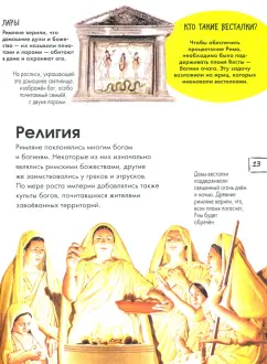 На страницах этой энциклопедии история Древнего Рима предстанет перед читателями в мельчайших деталях: ваш ребёнок узнает об архитектуре и искусстве, о государственном устройстве и военном деле великой империи. Какие причёски носили знатные римлянки? Чем интересовались горожане? В каких богов верили? Как устраивали свой быт?