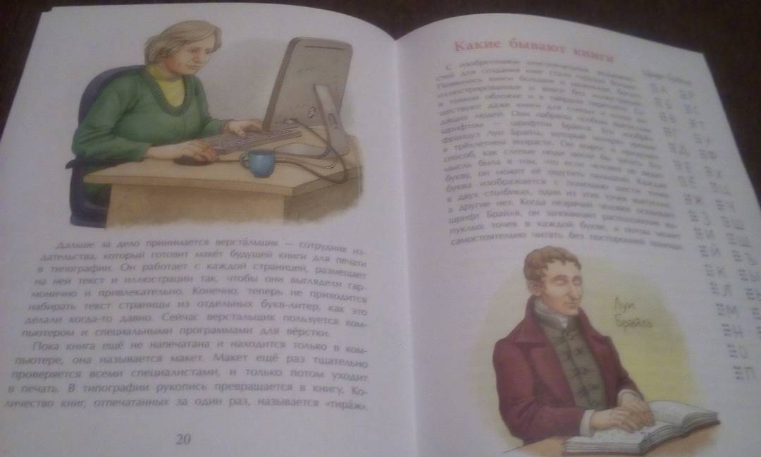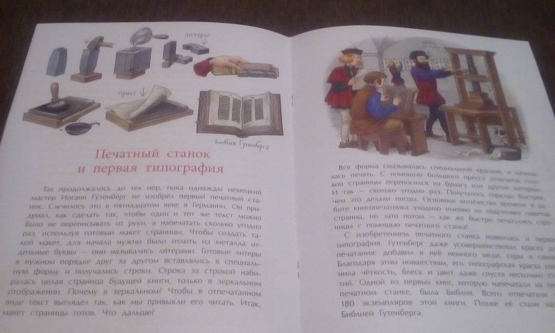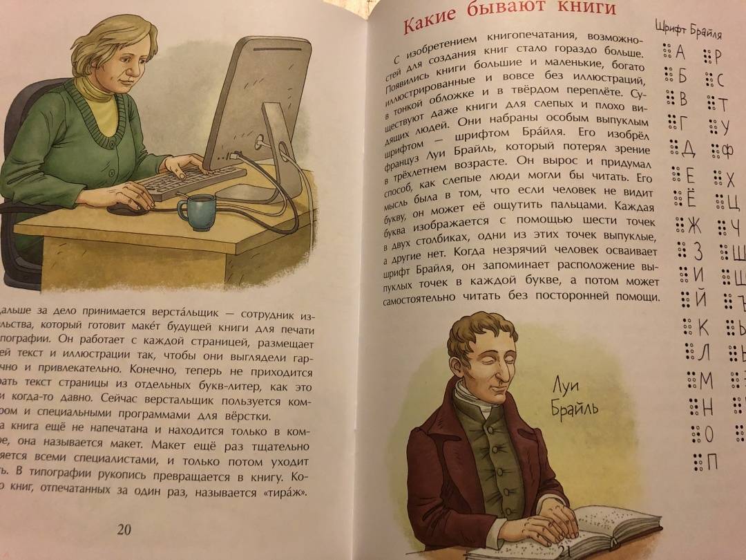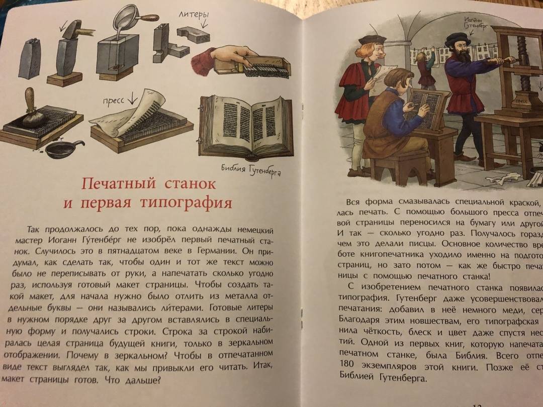 ОписаниеПредлагаем прогуляться по страницам книжной истории. Узнать, какими были первые книги, первый письменный язык, первая бумага и кто изобрёл первый печатный станок. А кроме того побываем в настоящей редакции, узнаем, кто и как делает книги для того, чтобы они оказались у нас в руках, открывая двери в тысячи миров.Для младшего школьного возраста.2-е издание.Предлагаем прогуляться по страницам книжной истории. Узнать, какими были первые книги, первый письменный язык, первая бумага и кто изобрёл первый печатный станок. А кроме того побываем в настоящей редакции, узнаем, кто и как делает книги для того, чтобы они оказались у нас в руках, открывая двери в тысячи миров.Для младшего школьного возраста.2-е издание.