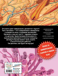 ОписаниеНаше тело — совершенная и невероятно сложная система, созданная эволюцией. Сколько триллионов клеток во взрослом человеке? О чем расскажет анализ ДНК? Какая мышца в нашем теле самая «быстрая»? Всё о строении и функционировании нашего организма — в умной книге для умных читателей, которые ищут самую новую и достоверную информацию. Эта книга не только расскажет, но и покажет вам все детали вашего тела. Более 50 удивительных клипов о работе систем нашего организма, а также ответы на многие вопросы Узнай и будь в курсе! Удивительные возможности виртуальной реальности помогут каждому заглянуть внутрь нашего тела, понять и восхититься его работой. Так реально, как будто ты внутри! Ссылка на бесплатное приложение и четкие инструкции внутри книги. Скачай, листай, слушай, смотри, удивляйся!Наше тело — совершенная и невероятно сложная система, созданная эволюцией. Сколько триллионов клеток во взрослом человеке? О чем расскажет анализ ДНК? Какая мышца в нашем теле самая «быстрая»? Всё о строении и функционировании нашего организма — в умной книге для умных читателей, которые ищут самую новую и достоверную информацию. Эта книга не только расскажет, но и покажет вам все детали вашего тела. Более 50 удивительных клипов о работе систем нашего организма, а также ответы на многие вопросы Узнай и будь в курсе! Удивительные возможности виртуальной реальности помогут каждому заглянуть внутрь нашего тела, понять и восхититься его работой. Так реально, как будто ты внутри! Ссылка на бесплатное приложение и четкие инструкции внутри книги. Скачай, листай, слушай, смотри, удивляйся!