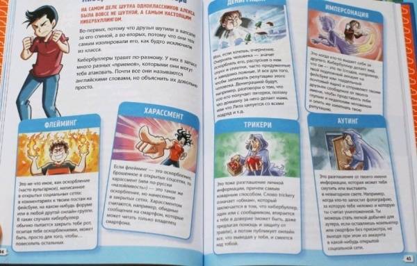 ОписаниеПланета WWW — огромна и полна сюрпризов.Соцсети, видеоигры и приложения делают ее идеальном местом для того, чтобы весело проводить время, узнавать новое и всегда оставаться на связи с друзьями, даже с самыми далекими!Но на этой планете небезопасно: кроме обычных людей, ее населяют тролли, хейтеры, самозванцы и сталкеры. Одним словом, кибербуллеры. Это они — «темная сторона» планеты Интернет. Спрятавшись за экраном, они атакуют смертельными оружием, простым и молниеносным, как один клик.Чтобы отражать их атаки, нужна специальная подготовка, а еще лучше — учебное пособие, которое научит, как опознать кибербуллера, одолеть его и уложить на ковер. Пособие должно быть небольшим, чтобы уместилось в кармане или в рюкзаке, кратким и полным маленьких хитростей.В общем, таким, как это.Готовы прокатиться в мир 2.0?Планета WWW — огромна и полна сюрпризов.Соцсети, видеоигры и приложения делают ее идеальном местом для того, чтобы весело проводить время, узнавать новое и всегда оставаться на связи с друзьями, даже с самыми далекими!Но на этой планете небезопасно: кроме обычных людей, ее населяют тролли, хейтеры, самозванцы и сталкеры. Одним словом, кибербуллеры. Это они — «темная сторона» планеты Интернет. Спрятавшись за экраном, они атакуют смертельными оружием, простым и молниеносным, как один клик.Чтобы отражать их атаки, нужна специальная подготовка, а еще лучше — учебное пособие, которое научит, как опознать кибербуллера, одолеть его и уложить на ковер. Пособие должно быть небольшим, чтобы уместилось в кармане или в рюкзаке, кратким и полным маленьких хитростей.В общем, таким, как это.Готовы прокатиться в мир 2.0?