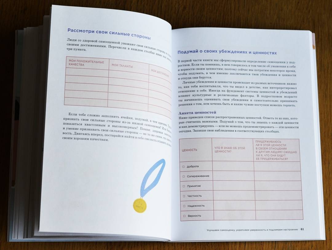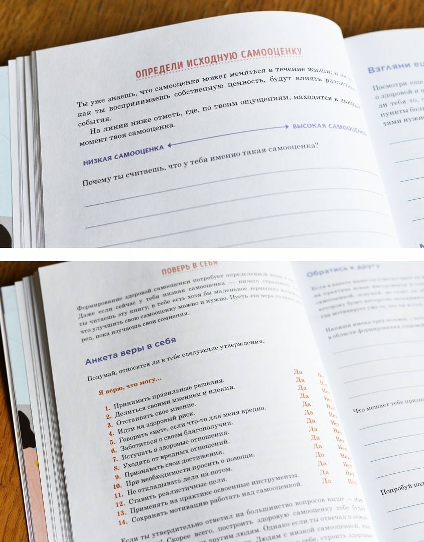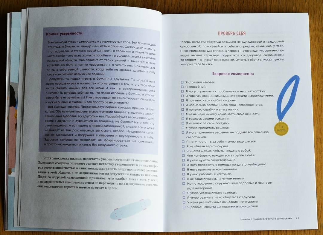 ОписаниеШкола, друзья, взрослые, соцсети очень часто влияют на то, каким ты себя видишь и что ощущаешь.В этом практическом руководстве представлены интересные творческие задания, которые помогут мыслить позитивно, избавиться от неуверенности и научиться любить себя.Более 50 упражнений (викторины, списки и многое другое) помогут ставить цели и научиться понимать, что помогает чувствовать себя сильнееРеальные истории от других подростков, которые помогут не чувствовать себя одинокимПрактика: самоуважению можно научиться, если постоянно тренировать этот навыкПочему решили издатьНизкая самооценка - одна из самых распространенных подростковых проблем. Эта яркая красивая тетрадь, созданная профессиональным психотерапевтом, поможет подростку справиться с неуверенностью в себе. Она содержит не сложные, но эффективные задания, которые выполняются легко, весело и с удовольствием.Автор - профессиональный психотерапевт, специализирующаяся на вопросах, связанных с самооценкой, травмами, депрессией, тревогой и тревожными расстройствами.Для кого книгаДля подростков.Для родителей, педагогов и психологов.СвернутьШкола, друзья, взрослые, соцсети очень часто влияют на то, каким ты себя видишь и что ощущаешь.В этом практическом руководстве представлены интересные творческие задания, которые помогут мыслить позитивно, избавиться от неуверенности и научиться любить себя.Более 50 упражнений (викторины, списки и многое другое) помогут ставить цели и научиться понимать, что помогает чувствовать себя сильнееРеальные истории от других подростков, которые помогут не чувствовать себя одинокимПрактика: самоуважению можно научиться, если постоянно тренировать этот навыкПочему решили издатьНизкая самооценка - одна из самых распространенных подростковых проблем. Эта яркая красивая тетрадь, созданная профессиональным психотерапевтом, поможет подростку справиться с неуверенностью в себе. Она содержит не сложные, но эффективные задания, которые выполняются легко, весело и с удовольствием.Автор - профессиональный психотерапевт, специализирующаяся на вопросах, связанных с самооценкой, травмами, депрессией, тревогой и тревожными расстройствами.Для кого книгаДля подростков.Для родителей, педагогов и психологов.СвернутьСвернуть