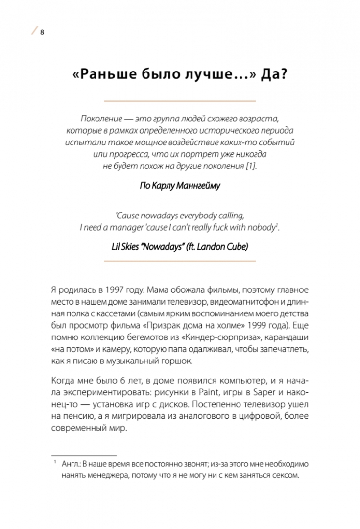 ОписаниеСоциальные сети, необъятный выбор возможностей, успешный успех, нехватка времени, поиски себя… Что с этим делать?Борьба за порядок, прежде всего в своей голове, отнимает почти все наши силы. Мы тратим уйму времени, чтобы найти ответы на вопросы, которые вряд ли волновали наших родителей.Что такое призвание и нужно ли его искать?Чему учиться в XXI веке?Как работать с мотивацией и дисциплиной?Где искать счастье?Вместе с автором книги Леной Николенко — молодым ученым-когнитивистом, автором блога об эффективном обучении (@lena__nikol) — вы определите, что важно успеть в первые годы взрослой жизни и как научиться жить в мире, который постоянно меняется.В книгу включены практические советы, ссылки на лекции мировых ученых и список книг, которые учат думать.Социальные сети, необъятный выбор возможностей, успешный успех, нехватка времени, поиски себя… Что с этим делать?Борьба за порядок, прежде всего в своей голове, отнимает почти все наши силы. Мы тратим уйму времени, чтобы найти ответы на вопросы, которые вряд ли волновали наших родителей.Что такое призвание и нужно ли его искать?Чему учиться в XXI веке?Как работать с мотивацией и дисциплиной?Где искать счастье?Вместе с автором книги Леной Николенко — молодым ученым-когнитивистом, автором блога об эффективном обучении (@lena__nikol) — вы определите, что важно успеть в первые годы взрослой жизни и как научиться жить в мире, который постоянно меняется.В книгу включены практические советы, ссылки на лекции мировых ученых и список книг, которые учат думать.