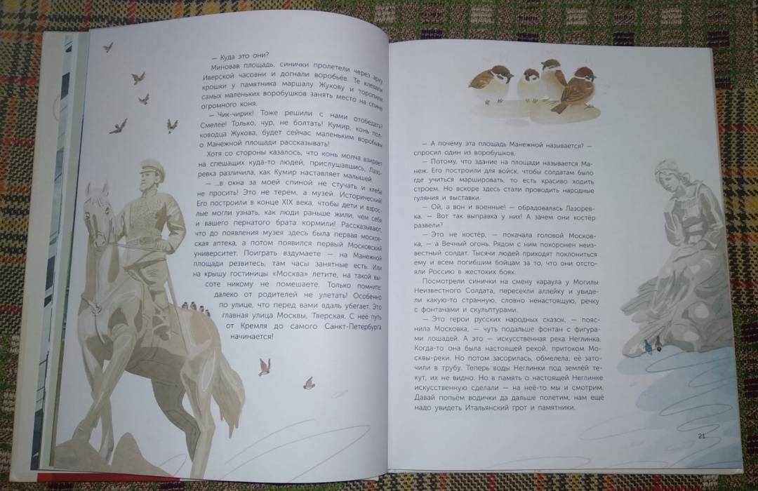 ОписаниеЛюбопытная синица Лазоревка отправляется в Москву, чтобы проверить, так ли хороша столица, как о ней говорят. Знакомство с синицей Московкой превращает путешествие в настоящее приключение: неутомимые птички исследуют достопримечательности, рассматривают детали, о которых известно только настоящим краеведам, знакомятся с удивительными обитателями города.Вместе с синичками вы узнаете, что за львы охраняли ворота в Коломенском; на какой улице появился первый тучерез; куда козерог из зоопарка сбегал; почему один из районов называли Новым Болваньем и многое-многое другое.Для младшего школьного возраста.Любопытная синица Лазоревка отправляется в Москву, чтобы проверить, так ли хороша столица, как о ней говорят. Знакомство с синицей Московкой превращает путешествие в настоящее приключение: неутомимые птички исследуют достопримечательности, рассматривают детали, о которых известно только настоящим краеведам, знакомятся с удивительными обитателями города.Вместе с синичками вы узнаете, что за львы охраняли ворота в Коломенском; на какой улице появился первый тучерез; куда козерог из зоопарка сбегал; почему один из районов называли Новым Болваньем и многое-многое другое.Для младшего школьного возраста.