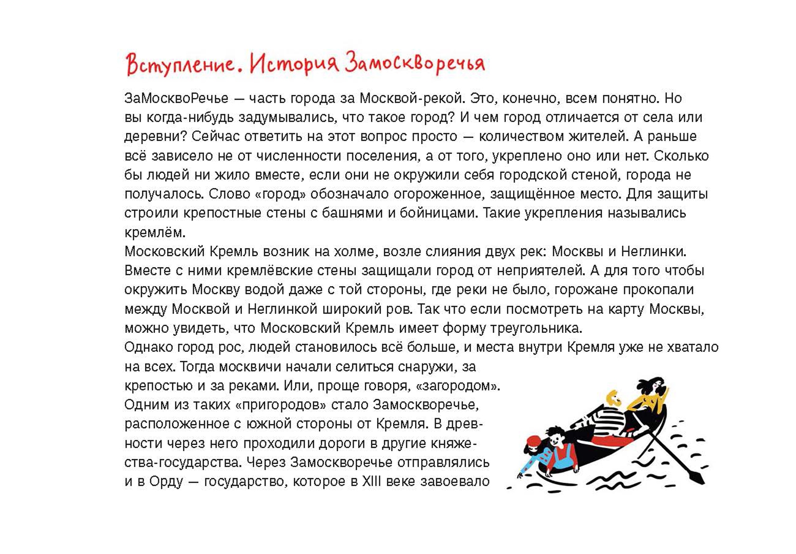 ОписаниеВы когда-нибудь видели кенгуру на доме? А может, знали, что в Москве есть остров? Честное слово! В нашем городе вообще столько всего интересного, только и успевай замечать. А уж с такими напарниками, как авторы этой книги, точно ничего не пропустите. Собирайте хорошую компанию - нас ждут весёлые приключения и много культурных, исторических и даже искусствоведческих открытий. Сколько бы вам ни было лет - вы точно не соскучитесь!65 самых интересных исторических объектов. Маршруты, приятные и удобные для прогулок с детьми:- по Большой и Малой Ордынке- по Пятницкой и Новокузнецкой улицам- по переулкам Замоскворечья: от Лаврушинского до Пятницкого.А ещё:- наклейки для игры- игра MemoryБольшая карта всего Замоскворечья. Гуляйте по маршрутам книги и создавайте свои!Для дошкольных и школьных возрастных групп.Вы когда-нибудь видели кенгуру на доме? А может, знали, что в Москве есть остров? Честное слово! В нашем городе вообще столько всего интересного, только и успевай замечать. А уж с такими напарниками, как авторы этой книги, точно ничего не пропустите. Собирайте хорошую компанию - нас ждут весёлые приключения и много культурных, исторических и даже искусствоведческих открытий. Сколько бы вам ни было лет - вы точно не соскучитесь!65 самых интересных исторических объектов. Маршруты, приятные и удобные для прогулок с детьми:- по Большой и Малой Ордынке- по Пятницкой и Новокузнецкой улицам- по переулкам Замоскворечья: от Лаврушинского до Пятницкого.А ещё:- наклейки для игры- игра MemoryБольшая карта всего Замоскворечья. Гуляйте по маршрутам книги и создавайте свои!Для дошкольных и школьных возрастных групп.