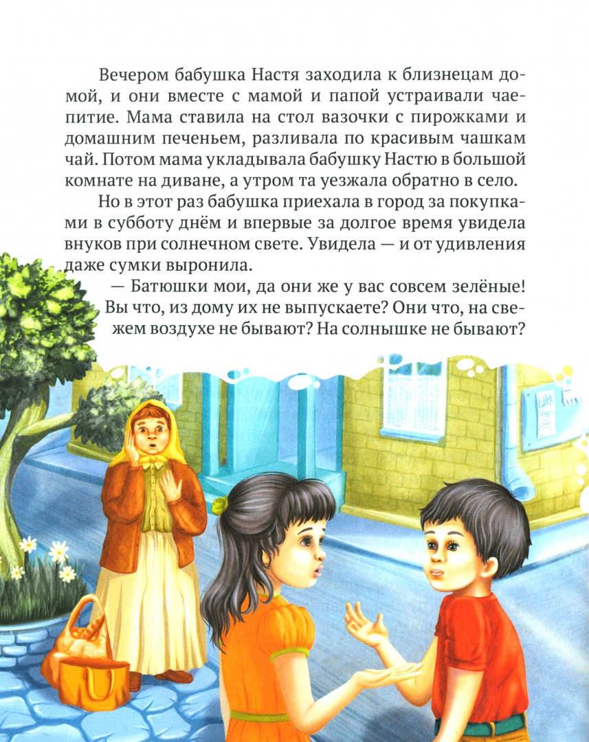 ОписаниеКак же это здорово-провести лето в деревне! Можно целыми днями бегать по зелёной травке, играть в мяч, купаться в речке, загорать и есть ягоды и фрукты прямо с дерева. Близнецам Мише и Маше повезло-их на всё лето привезли к бабушке в село. Там они знакомятся с настоящей деревенской жизнью, узнают много нового про растения и животных и учатся помогать бабушке в огороде.А мудрая бабушка в беседах с внуками ненавязчиво пересказывает некоторые евангельские притчи, просто и понятно объясняя их смысл.Для чтения взрослыми детям.Как же это здорово-провести лето в деревне! Можно целыми днями бегать по зелёной травке, играть в мяч, купаться в речке, загорать и есть ягоды и фрукты прямо с дерева. Близнецам Мише и Маше повезло-их на всё лето привезли к бабушке в село. Там они знакомятся с настоящей деревенской жизнью, узнают много нового про растения и животных и учатся помогать бабушке в огороде.А мудрая бабушка в беседах с внуками ненавязчиво пересказывает некоторые евангельские притчи, просто и понятно объясняя их смысл.Для чтения взрослыми детям.