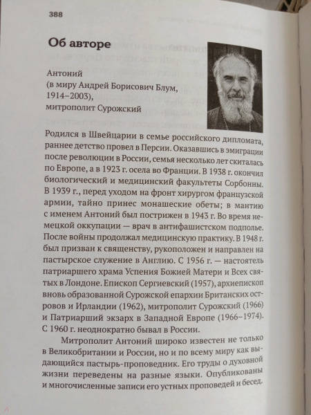 Объем, стр. 400 ISBN 978-5-907307-61-2 Автор Митрополит Антоний Сурожский, Дик А., Ерохина В., Завалова М. Переводчик Дик А., Ерохина В., Завалова М. Минимальный возраст 12+ Год издания книги 2021 Тип обложки Твердый переплет Иллюстрации Черно-белые Вес, г 370г Размеры 190х130х23 мм - Отзывы