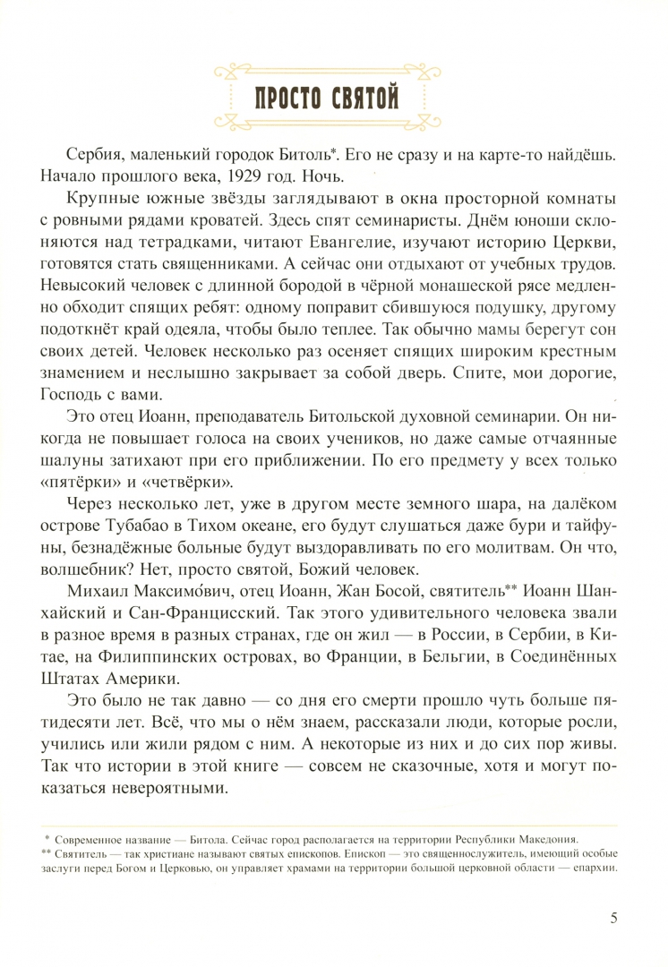 ОписаниеКнига "Епископ, который не носил ботинок" рассказывает об удивительном святом XX века - святителе Иоанне Шанхайском и Сан-Францисском. Жизненный путь владыки был насыщен событиями, и самые яркие о них легли в основу той книги встреча и юности с великим князем Константином Константиновичем Романовым, служение в китайском Шанхае, где отец Иоанн основал детский приют, эмиграция на филиппинский остров Тубабао, где вместе с русскими беженцами он провел три года, служение в Европе и Америке, где его трудами была основана русская гимназия и достроен самый большой храм Русской Православной Церкви. Владыка Иоанн объехал полмира, и везде его отличали доброта и любовь к людям. Автор Елена Литвяк предлагает читателям порассуждать о том, какие они, наши святые, и что делает их близкими людям и Богу.Книга основана на воспоминаниях современников владыки Иоанна и будет интересна широкому кругу читателей.Книга "Епископ, который не носил ботинок" рассказывает об удивительном святом XX века - святителе Иоанне Шанхайском и Сан-Францисском. Жизненный путь владыки был насыщен событиями, и самые яркие о них легли в основу той книги встреча и юности с великим князем Константином Константиновичем Романовым, служение в китайском Шанхае, где отец Иоанн основал детский приют, эмиграция на филиппинский остров Тубабао, где вместе с русскими беженцами он провел три года, служение в Европе и Америке, где его трудами была основана русская гимназия и достроен самый большой храм Русской Православной Церкви. Владыка Иоанн объехал полмира, и везде его отличали доброта и любовь к людям. Автор Елена Литвяк предлагает читателям порассуждать о том, какие они, наши святые, и что делает их близкими людям и Богу.Книга основана на воспоминаниях современников владыки Иоанна и будет интересна широкому кругу читателей.
