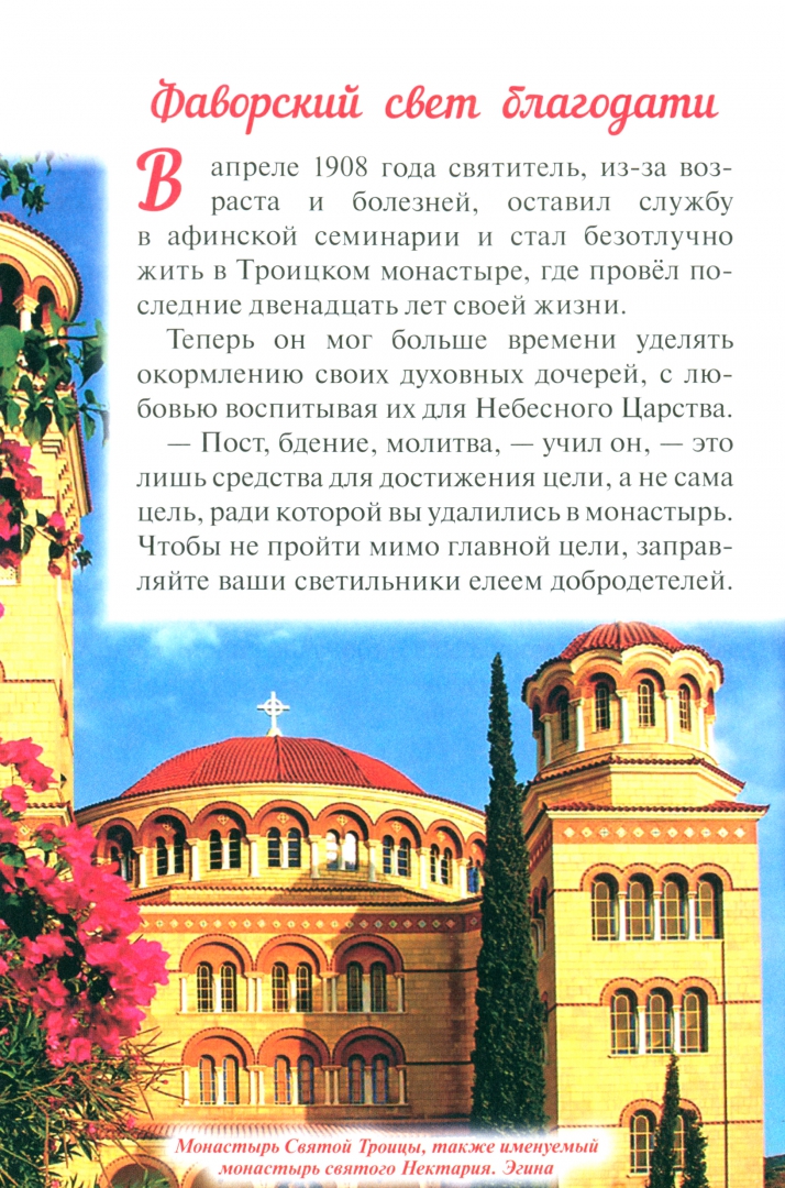 ОписаниеСвятителя Нектария Эгинского очень почитают не только на его родине, в Греции, но и во всём мире. Многие годы этот дивный святой Вселенской Церкви терпел клевету и был нещадно гоним. До конца дней своих он оставался опальным митрополитом и должен был нести крест изгнания. О том, как это случилось, о его жизни и чудесах вы прочтёте в нашей книжке, и надеемся, и вы полюбите митрополита Нектария так же, как любят его все, кто его знает.Святителя Нектария Эгинского очень почитают не только на его родине, в Греции, но и во всём мире. Многие годы этот дивный святой Вселенской Церкви терпел клевету и был нещадно гоним. До конца дней своих он оставался опальным митрополитом и должен был нести крест изгнания. О том, как это случилось, о его жизни и чудесах вы прочтёте в нашей книжке, и надеемся, и вы полюбите митрополита Нектария так же, как любят его все, кто его знает.