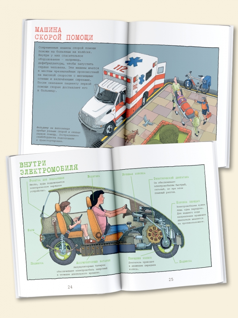 СвернутьЭнциклопедия «Полезные машины» — это увлекательный и детальный гид для юных читателей, которые увлекаются самым разным транспортом или хотят узнать о нём больше.У читателей появится уникальная возможность заглянуть внутрь каждой машины и узнать, как она устроена, поскольку все модели представлены в разрезе, а наиболее значимые детали подписаны.Книга разделена на шесть частей: автомобили, спасательные машины, вертолёты, грузовики, тракторы и экскаваторы. В каждом из них представлены наиболее интересные модели. Дети узнают, как устроены карета скорой помощи, пожарная и полицейская машины, как работает зерноуборочный комбайн, мусоровоз, эвакуатор, почему взлетает вертолёт и многое другое.Дэвид Вест — известный иллюстратор и автор детских познавательных книг. Он выпустил более 500 книг на самые разные темы — от динозавров и мифологии до технологий и науки.Для среднего школьного возраста.Как устроена карета скорой помощи? Почему взлетает вертолет? Как работает зерноуборочный комбайн?