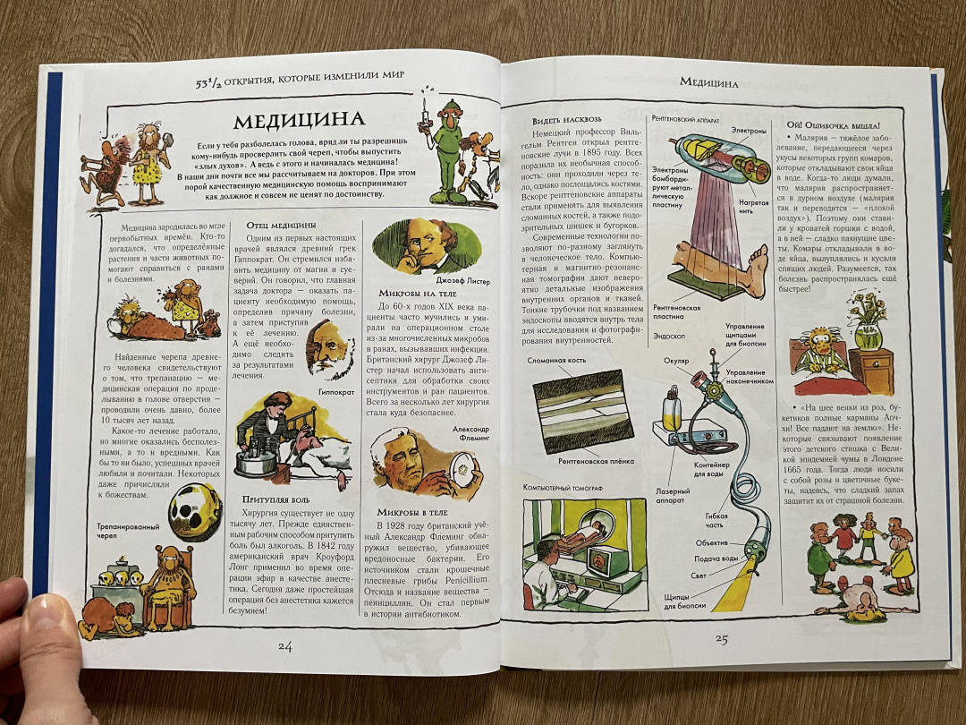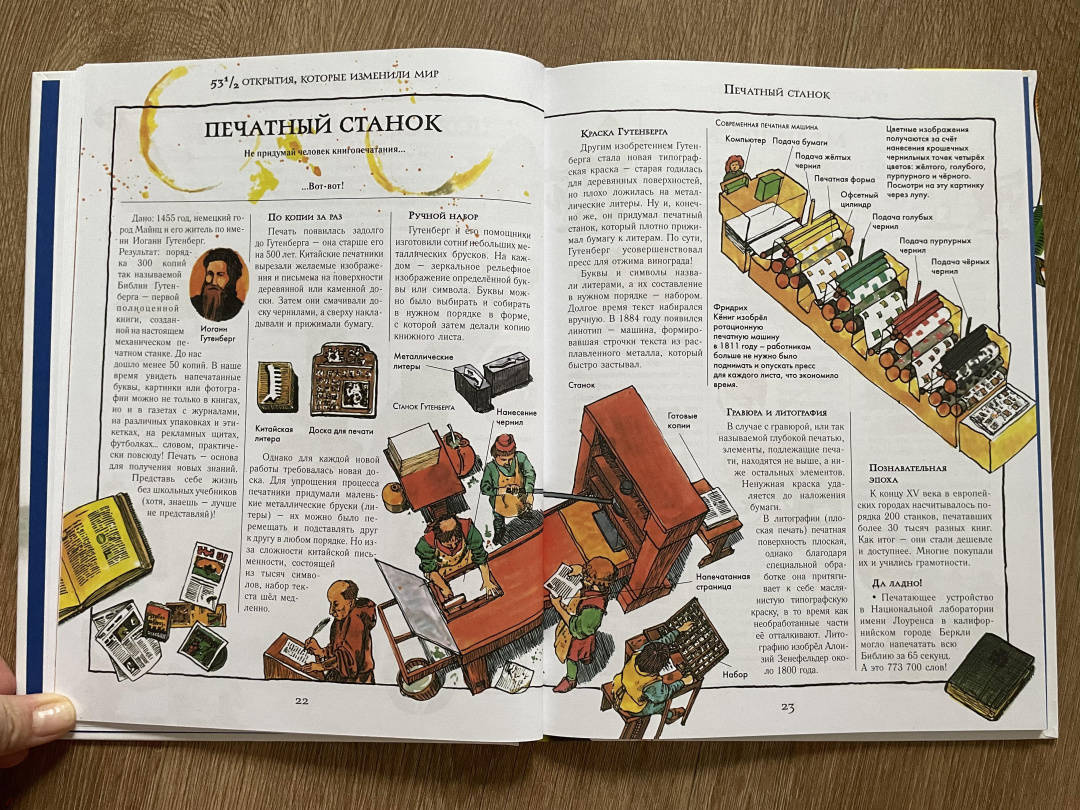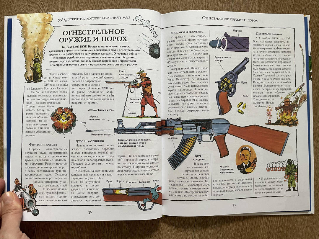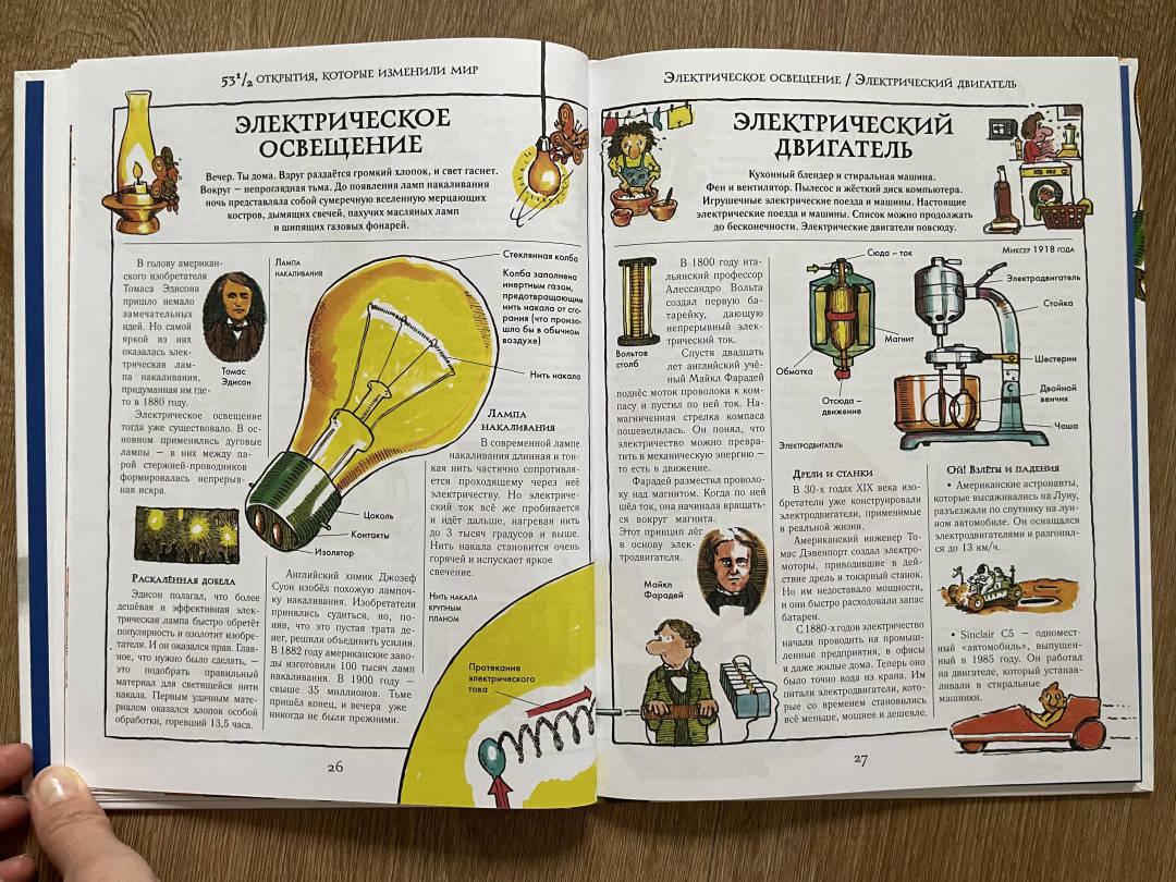 СвернутьКнига "531/2 открытия, которые изменили мир" расскажет читателю о вещах, которые в буквальном смысле перевернули наш мир! Техника, здания, книги, одежда, двигатели, телевизоры и компьютеры - без них мы не представляем своей жизни, но когда-то ничего этого просто не существовало.На страницах этого издания занимательно изложена история мировой технологической революции - от первобытных открытий, вроде колеса и огня, до современных изобретений, компьютеров, космических ракет и автомобилей.Стив Паркер написал более 300 книг. Он интересно и весело рассказывает о сложных вещах, а его книги способны заинтересовать как детей, так и взрослых.Художник и дизайнер этой книги, Дэвид Вест - известный иллюстратор и автор детских познавательных книг на самые разные темы - от динозавров и мифологии до технологий и науки.Для среднего школьного возрастаПредставьте себе жизнь без музыки, зданий, одежды, книг, двигателей и даже слов!