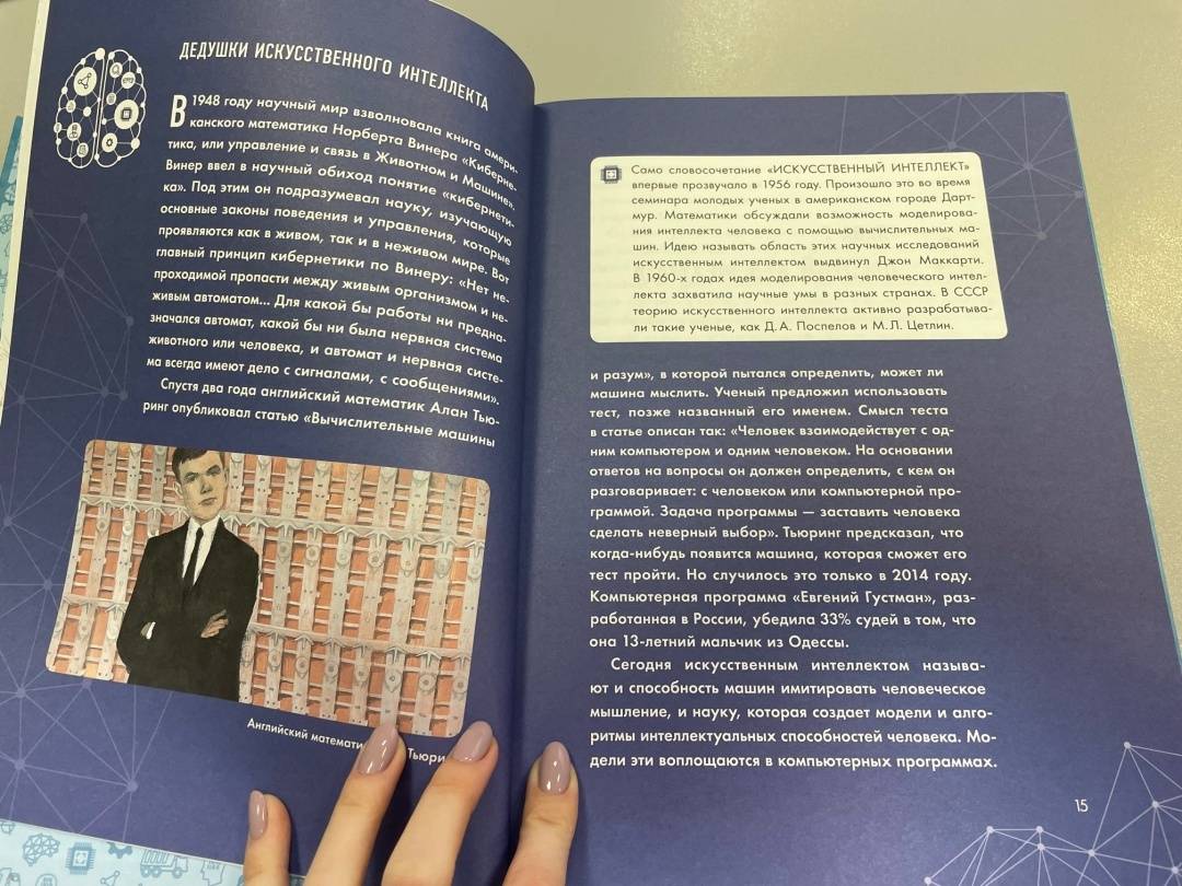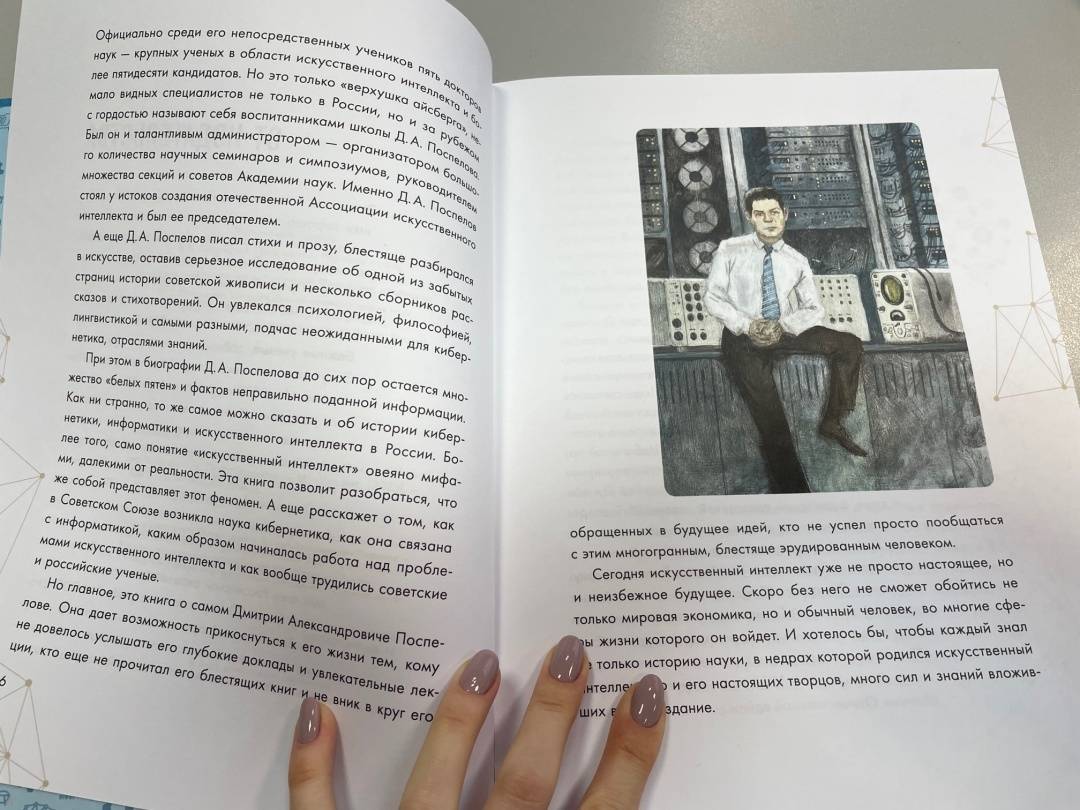 ОписаниеИскусственный интеллект - это уже не просто настоящее человечества, но и его неизбежное будущее. У истоков создания ИИ стояли и отечественные ученые. Одним из его родоначальников считается Дмитрий Александрович Поспелов. Блестящий ученый, президент отечественной Ассоциации искусственного интеллекта, кумир студентов и аспирантов. А еще он писал стихи и прозу, блестяще разбирался в искусстве, увлекался психологией, философией, лингвистикой... При этом в биографии Д.А. Поспелова до сих пор остается множество "белых пятен".Эта книга позволит разобраться, что же такое на самом деле искусственный интеллект. А еще поведает о том, как в стране возникла наука кибернетика и как начиналась работа над проблемами ИИ. И конечно, эта книга расскажет о многогранной жизни и творчестве одного из важнейших специалистов в этой области - Дмитрии Александровиче Поспелове.Издание с дополненной реальностью. Для среднего и старшего школьного возраста.Искусственный интеллект - это уже не просто настоящее человечества, но и его неизбежное будущее. У истоков создания ИИ стояли и отечественные ученые. Одним из его родоначальников считается Дмитрий Александрович Поспелов. Блестящий ученый, президент отечественной Ассоциации искусственного интеллекта, кумир студентов и аспирантов. А еще он писал стихи и прозу, блестяще разбирался в искусстве, увлекался психологией, философией, лингвистикой... При этом в биографии Д.А. Поспелова до сих пор остается множество "белых пятен".Эта книга позволит разобраться, что же такое на самом деле искусственный интеллект. А еще поведает о том, как в стране возникла наука кибернетика и как начиналась работа над проблемами ИИ. И конечно, эта книга расскажет о многогранной жизни и творчестве одного из важнейших специалистов в этой области - Дмитрии Александровиче Поспелове.Издание с дополненной реальностью. Для среднего и старшего школьного возраста.