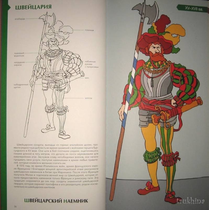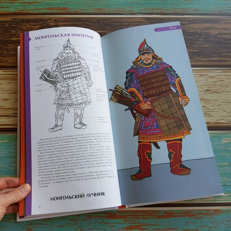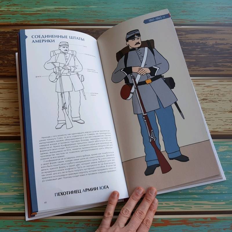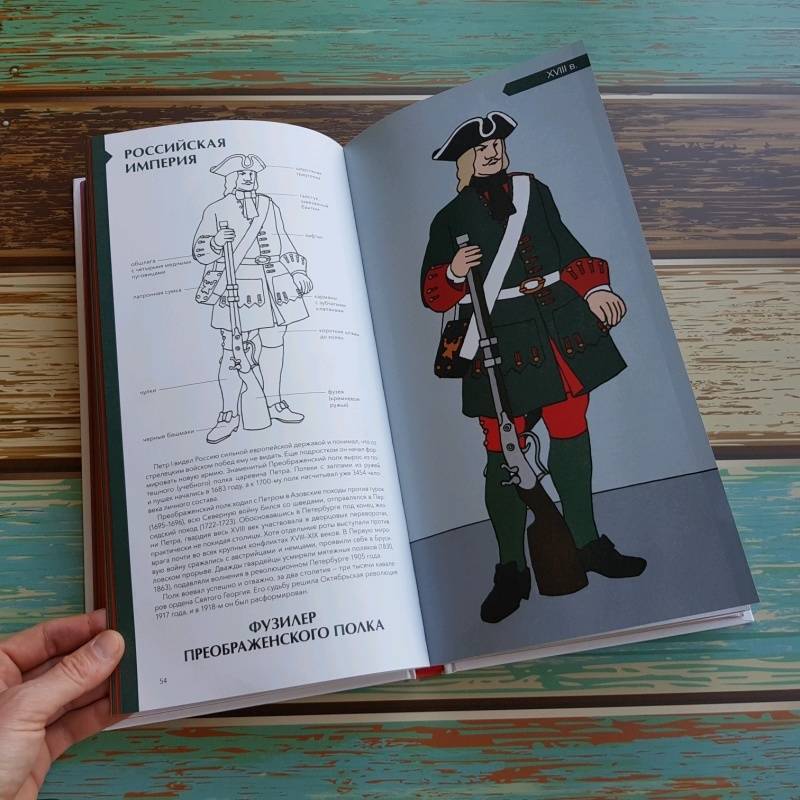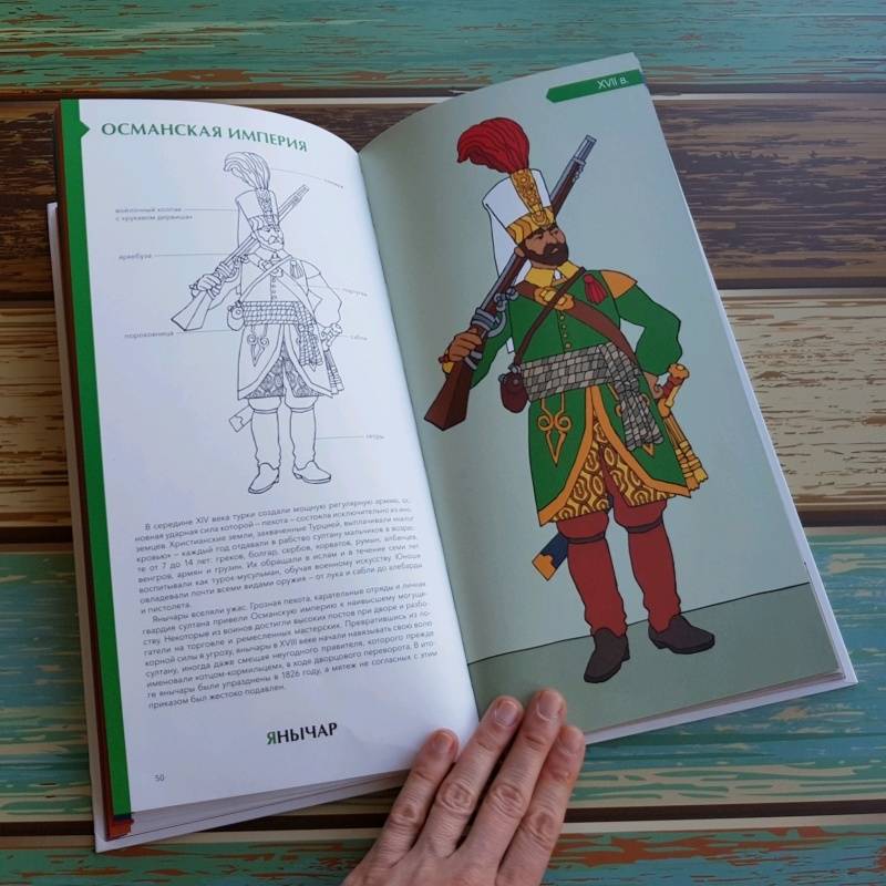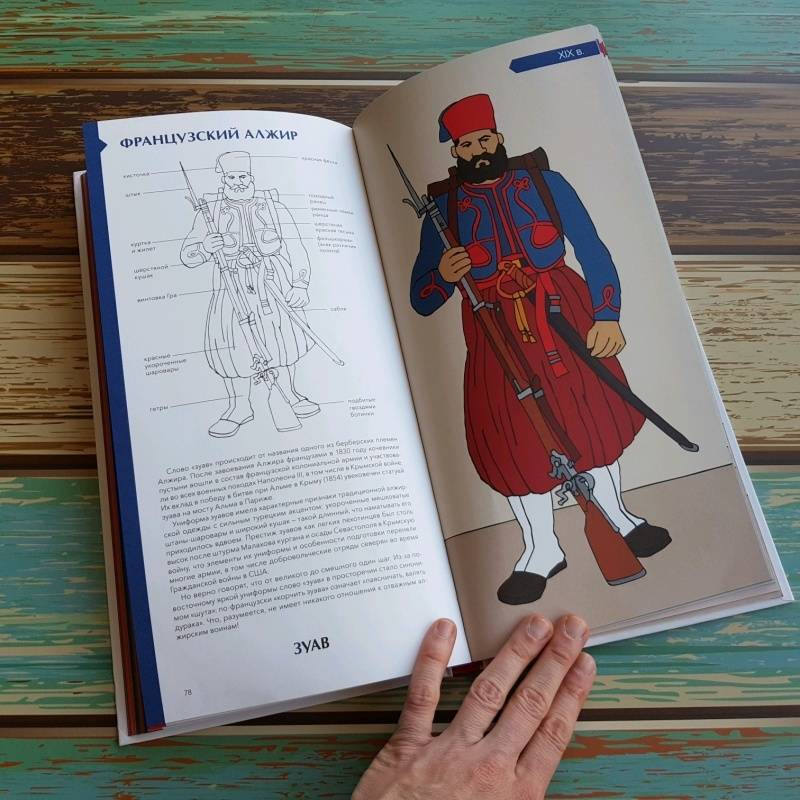ОписаниеО книгеОтважные самураи, благородные рыцари, бравые гусары и незаменимые пехотинцы... Военные вызывали восхищение во все времена.Эта книга - сборник очерков о военной моде и особенностях экипировки солдат разных эпох; об истории племен, царств и империй, за которые сражались люди в форме. Вы узнаете, в честь кого называли полки в армии Древнего Египта, чем занимались легионеры в мирное время, кто разработал форму для красноармейцев, почему солдат-южан армии США прозвали "серыми орехами" и многое другое. Проследите историю военной моды сквозь времена и страны!Интересный факт: 10 из 53 очерков - "наши". Тексты писала Анна Красова, историк (соискатель ученой степени кандидата исторических наук), окончившая аспирантуру Института Всеобщей истории РАН. Восемь иллюстраций Доминик Эрард рисовал специально для читателей МИФа по запросу издательства.Как работать с этой книгойМожно читать книгу с самого начала, а можно проследить историю развития военной формы отдельной страны. Например, сразу отправиться во Францию, Германию, США или Россию.В книге есть черно-белые иллюстрации, которые можно раскрашивать. Все детали военного костюма подписаны, что позволит обогатить словарный запас. В конце книги есть глоссарий, где даны пояснения к основным терминам, и словарь исторических личностей.Фишки книгиНе оставит равнодушным ни одного мужчинуКнига рассказывает о военных костюмах разных стран и эпохВключено 10 русских военных костюмов.Можно раскрашивать!Включает исторические факты и подробные иллюстрации формКрасивый подарочный форматДля кого эта книгаДля мужчин любого возраста!Для всех любителей истории.Об авторахАнн-Флоранс Лемассон - изучала литературу в Парижском университете Сорбонна. Сейчас она преподаватель средних классов в Безансоне и Орлеане, где и живет в настоящее время. Ее страсть к книгам разделяет Доминик Эрард. Вместе они написали несколько работ, сочитая иллюстрации и тексты.Доминик Эрард - родился в 1958 году. После изучения изобразительного искусства в Страсбургском университете он несколько лет провел в Морокко, где занимался живописью и повышал свои навыки. Вернувшись во Францию, он работал с группой CLAC и занимался сценографией для Ensemble Artistique d'Alsace. В 1986 году он переехал в Орлеан, где уделял время живописи, обучению, созданию игр и иллюстрации книг. Его работы регулярно выставлялись в галереях как во Франции, так и за рубежом.СвернутьО книгеОтважные самураи, благородные рыцари, бравые гусары и незаменимые пехотинцы... Военные вызывали восхищение во все времена.Эта книга - сборник очерков о военной моде и особенностях экипировки солдат разных эпох; об истории племен, царств и империй, за которые сражались люди в форме. Вы узнаете, в честь кого называли полки в армии Древнего Египта, чем занимались легионеры в мирное время, кто разработал форму для красноармейцев, почему солдат-южан армии США прозвали "серыми орехами" и многое другое. Проследите историю военной моды сквозь времена и страны!Интересный факт: 10 из 53 очерков - "наши". Тексты писала Анна Красова, историк (соискатель ученой степени кандидата исторических наук), окончившая аспирантуру Института Всеобщей истории РАН. Восемь иллюстраций Доминик Эрард рисовал специально для читателей МИФа по запросу издательства.Как работать с этой книгойМожно читать кни