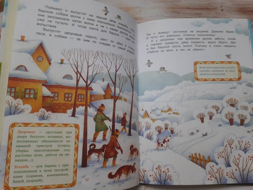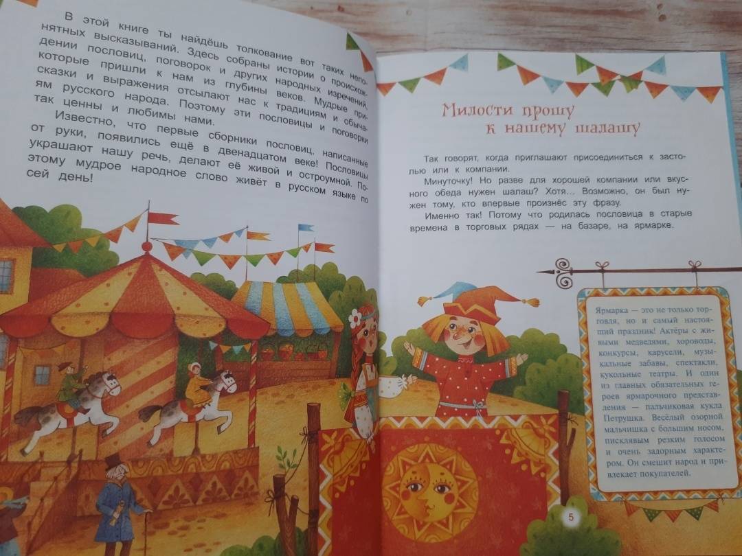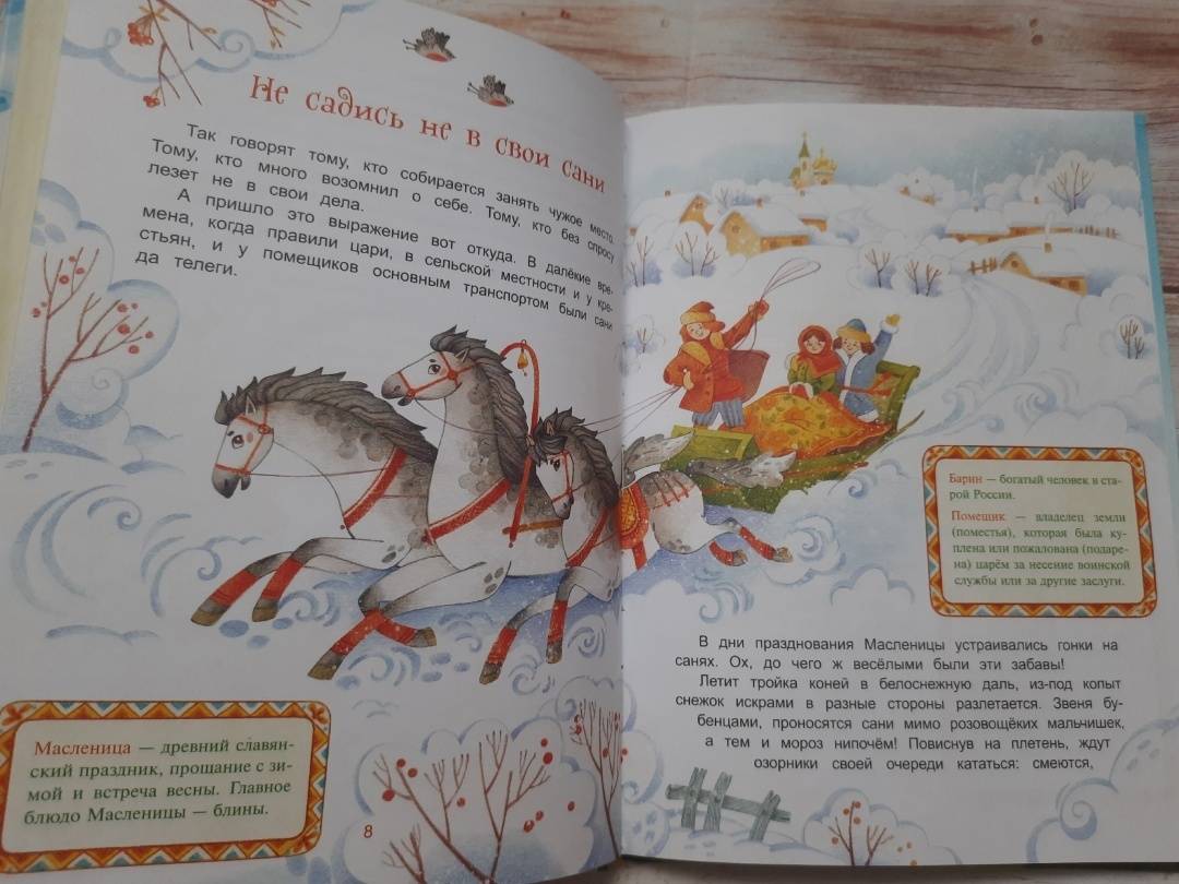 ОписаниеКак можно узнавать историю своего народа? На уроке за партой. Или из умных книжек, написанных серьёзными учёными… А можно просто прислушаться к тому, как разговаривают взрослые. Пословицы и поговорки пришли в нашу жизнь из глубины веков, рассказывают о событиях древних времён, но при этом они актуальны, востребованы и украшают современный русский язык. В нескольких словах, которые были знакомы ещё нашим прапрабабушкам, раскрывается история страны, звучит житейская мудрость, замешанная на крестьянской смекалке, искрится народный юмор. Рассказ об истории крылатых выражений сопровождают интересные факты, которые вызовут интерес у юных читателей XXI века, и исторические справки, превращающие каждую пословицу в картину народной жизни с её бытом, традициями, праздниками, радостями и огорчениями. Книга адресована детям от 6 лет.Как можно узнавать историю своего народа? На уроке за партой. Или из умных книжек, написанных серьёзными учёными… А можно просто прислушаться к тому, как разговаривают взрослые. Пословицы и поговорки пришли в нашу жизнь из глубины веков, рассказывают о событиях древних времён, но при этом они актуальны, востребованы и украшают современный русский язык. В нескольких словах, которые были знакомы ещё нашим прапрабабушкам, раскрывается история страны, звучит житейская мудрость, замешанная на крестьянской смекалке, искрится народный юмор. Рассказ об истории крылатых выражений сопровождают интересные факты, которые вызовут интерес у юных читателей XXI века, и исторические справки, превращающие каждую пословицу в картину народной жизни с её бытом, традициями, праздниками, радостями и огорчениями. Книга адресована детям от 6 лет.