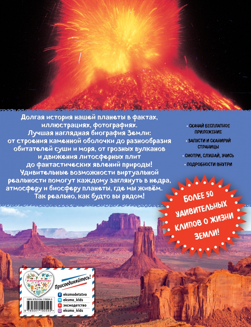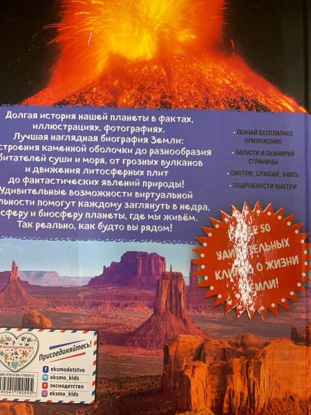 ОписаниеНет другой такой известной планеты, где природа была бы так разнообразна, как на нашей Земле. Почему извергаются вулканы? Куда движутся континенты? Как побывать внутри урагана? Сколько людей сможет выдержать Земля? Всё о недрах, землетрясениях, облаках, океанах и подводных впадинах, ледниках и джунглях — в умной книге для умных читателей, которые ищут самую новую и достоверную информацию. Возможно, это лучшая наглядная биография Земли! Эта книга не только расскажет, но и покажет вам в деталях долгую историю нашей планеты. Более 50 удивительных клипов о жизни Земли и жизни на ней, а также ответы на многие вопросы. Узнай и будь в курсе! Удивительные возможности виртуальной реальности помогут каждому заглянуть в недра, атмосферу и биосферу планеты, где мы живем. Ссылка на бесплатное приложение и четкие инструкции внутри книги. Скачай, листай, слушай, смотри, удивляйся!Нет другой такой известной планеты, где природа была бы так разнообразна, как на нашей Земле. Почему извергаются вулканы? Куда движутся континенты? Как побывать внутри урагана? Сколько людей сможет выдержать Земля? Всё о недрах, землетрясениях, облаках, океанах и подводных впадинах, ледниках и джунглях — в умной книге для умных читателей, которые ищут самую новую и достоверную информацию. Возможно, это лучшая наглядная биография Земли! Эта книга не только расскажет, но и покажет вам в деталях долгую историю нашей планеты. Более 50 удивительных клипов о жизни Земли и жизни на ней, а также ответы на многие вопросы. Узнай и будь в курсе! Удивительные возможности виртуальной реальности помогут каждому заглянуть в недра, атмосферу и биосферу планеты, где мы живем. Ссылка на бесплатное приложение и четкие инструкции внутри книги. Скачай, листай, слушай, смотри, удивляйся!
