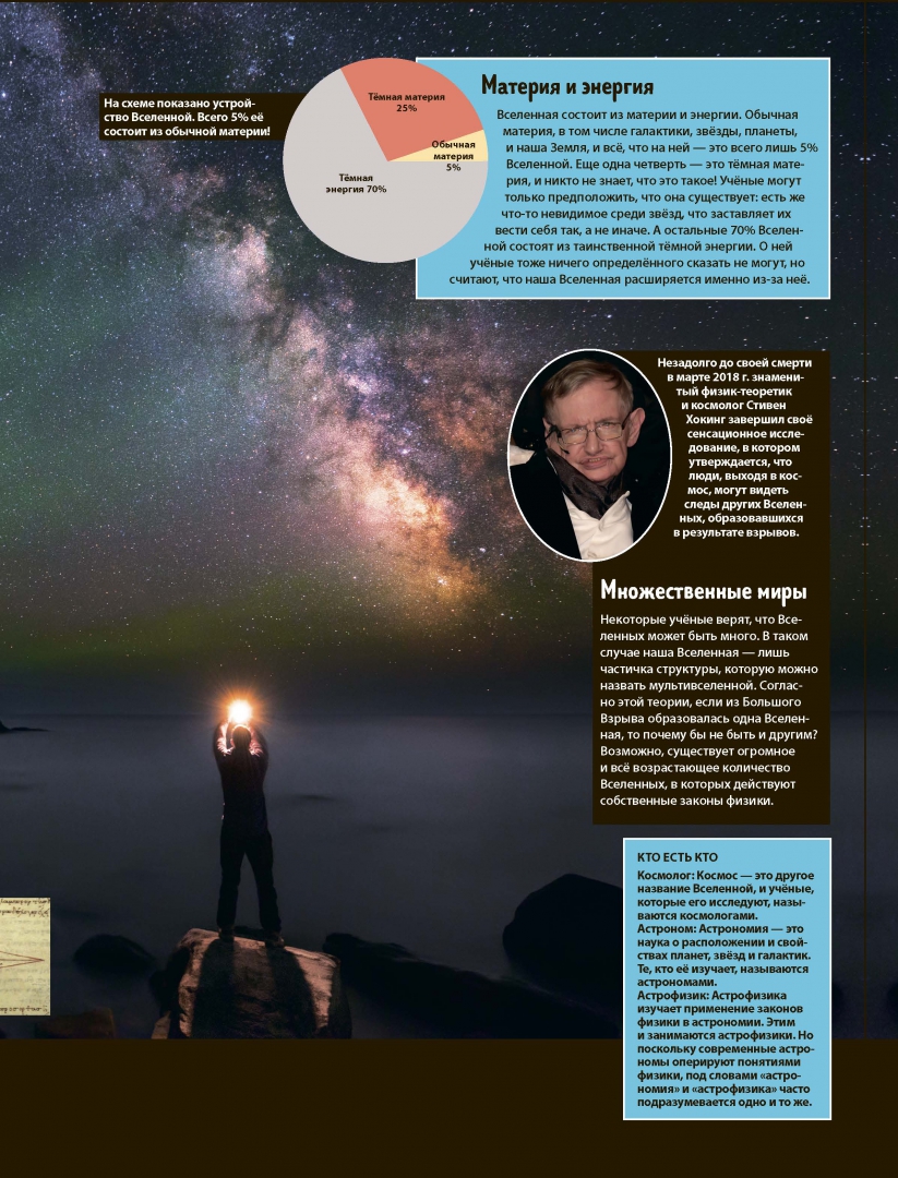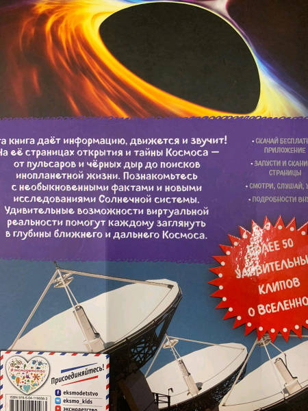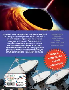 ОписаниеБесконечный Космос с кометами и планетами, чёрными дырами и пульсарами, поисками инопланетной жизни и разноцветными звёздами всегда притягивал внимание человека.Откуда прилетают кометы? Что такое Большой взрыв? Сколько времени осталось жить нашему Солнцу? Эта книга не только расскажет, но и покажет вам все тайны Космоса. Всё, что известно о ближнем и дальнем Космосе, Солнечной системе, а также об истории и возможностях космонавтики — в умной книге для умных читателей, которые ищут самую новую и достоверную информацию. Более 50 удивительных клипов о Космосе, а также ответы на многие вопросы. Узнай и будь в курсе! Удивительные возможности виртуальной реальности помогут каждому заглянуть в глубины ближнего и дальнего Космоса. Так реально, как будто ты рядом! Ссылка на бесплатное приложение и четкие инструкции внутри книги. Скачай, листай, слушай, смотри, удивляйся!Бесконечный Космос с кометами и планетами, чёрными дырами и пульсарами, поисками инопланетной жизни и разноцветными звёздами всегда притягивал внимание человека.Откуда прилетают кометы? Что такое Большой взрыв? Сколько времени осталось жить нашему Солнцу? Эта книга не только расскажет, но и покажет вам все тайны Космоса. Всё, что известно о ближнем и дальнем Космосе, Солнечной системе, а также об истории и возможностях космонавтики — в умной книге для умных читателей, которые ищут самую новую и достоверную информацию. Более 50 удивительных клипов о Космосе, а также ответы на многие вопросы. Узнай и будь в курсе! Удивительные возможности виртуальной реальности помогут каждому заглянуть в глубины ближнего и дальнего Космоса. Так реально, как будто ты рядом! Ссылка на бесплатное приложение и четкие инструкции внутри книги. Скачай, листай, слушай, смотри, удивляйся!