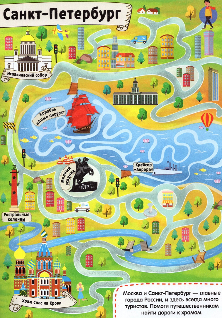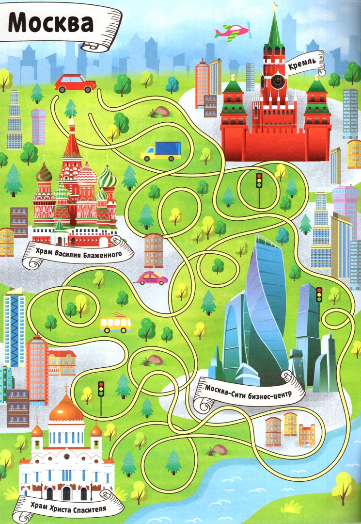 ОписаниеКнига с лабиринтами включает комплекс заданий для ребёнка на развитие внимания, памяти и визуального восприятия.На каждой странице представлены яркие картинки с изображениями карты нашей страны, достопримечательностей и других предметов.Ребёнок познакомится с символами нашей страны и животными, а также узнает, в какой местности они обитают. А ещё совершит путешествие по Москве и Санкт-Петербургу!С этой книгой красочных лабиринтов вы сможете совершить путешествие по нашей стране и увидеть её природные и культурные достопримечательности не выходя из дома.Рекомендовано детям старше 5 лет.Книга с лабиринтами включает комплекс заданий для ребёнка на развитие внимания, памяти и визуального восприятия.На каждой странице представлены яркие картинки с изображениями карты нашей страны, достопримечательностей и других предметов.Ребёнок познакомится с символами нашей страны и животными, а также узнает, в какой местности они обитают. А ещё совершит путешествие по Москве и Санкт-Петербургу!С этой книгой красочных лабиринтов вы сможете совершить путешествие по нашей стране и увидеть её природные и культурные достопримечательности не выходя из дома.Рекомендовано детям старше 5 лет.